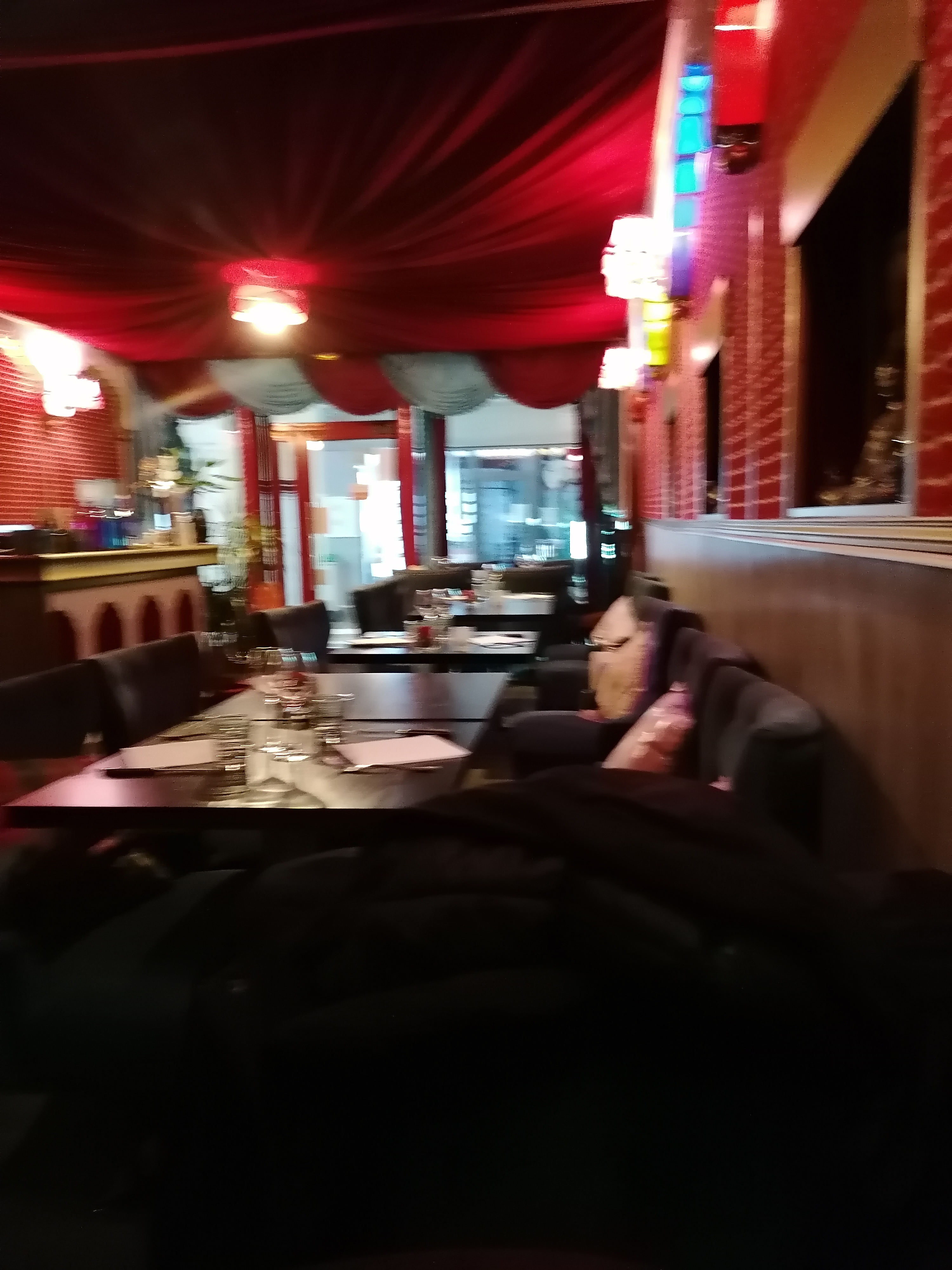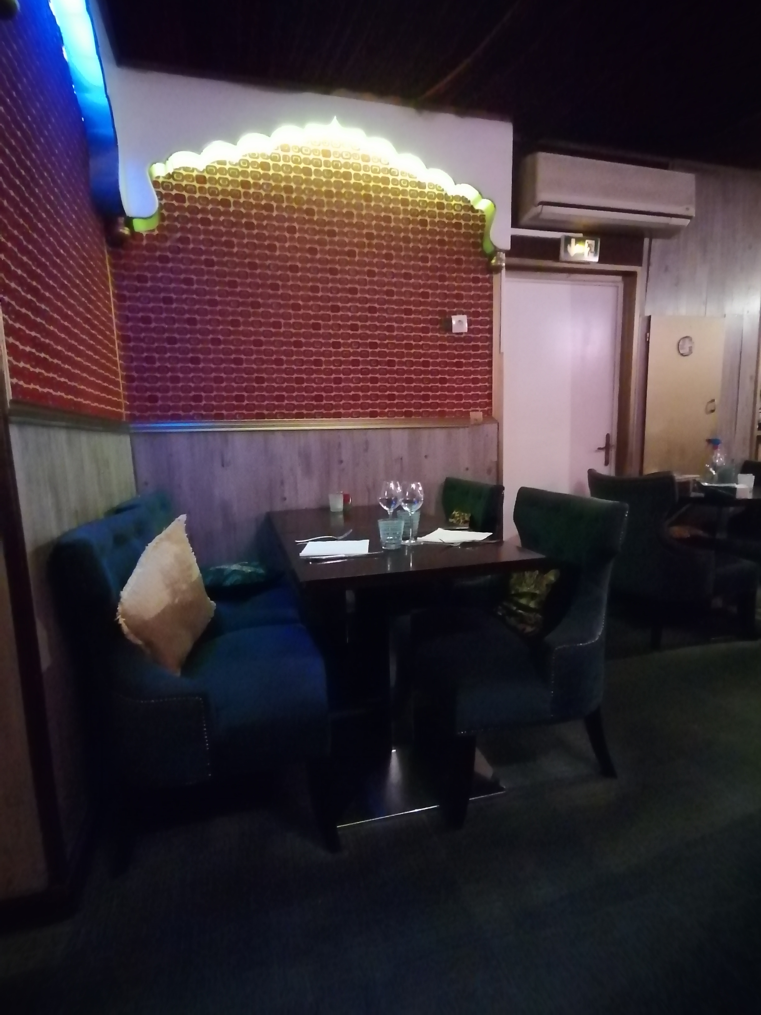 Restaurant traditionnel indien, Stationnement aisé dans la rue. J'ai pris des samoussa viande, nan fromage et tikka massala agneau. Tout est très bon, copieux. Les fauteuils sont très confortables et la déco traditionnelle sympathique. Petite musique d'ambiance en fond. Super sympa.