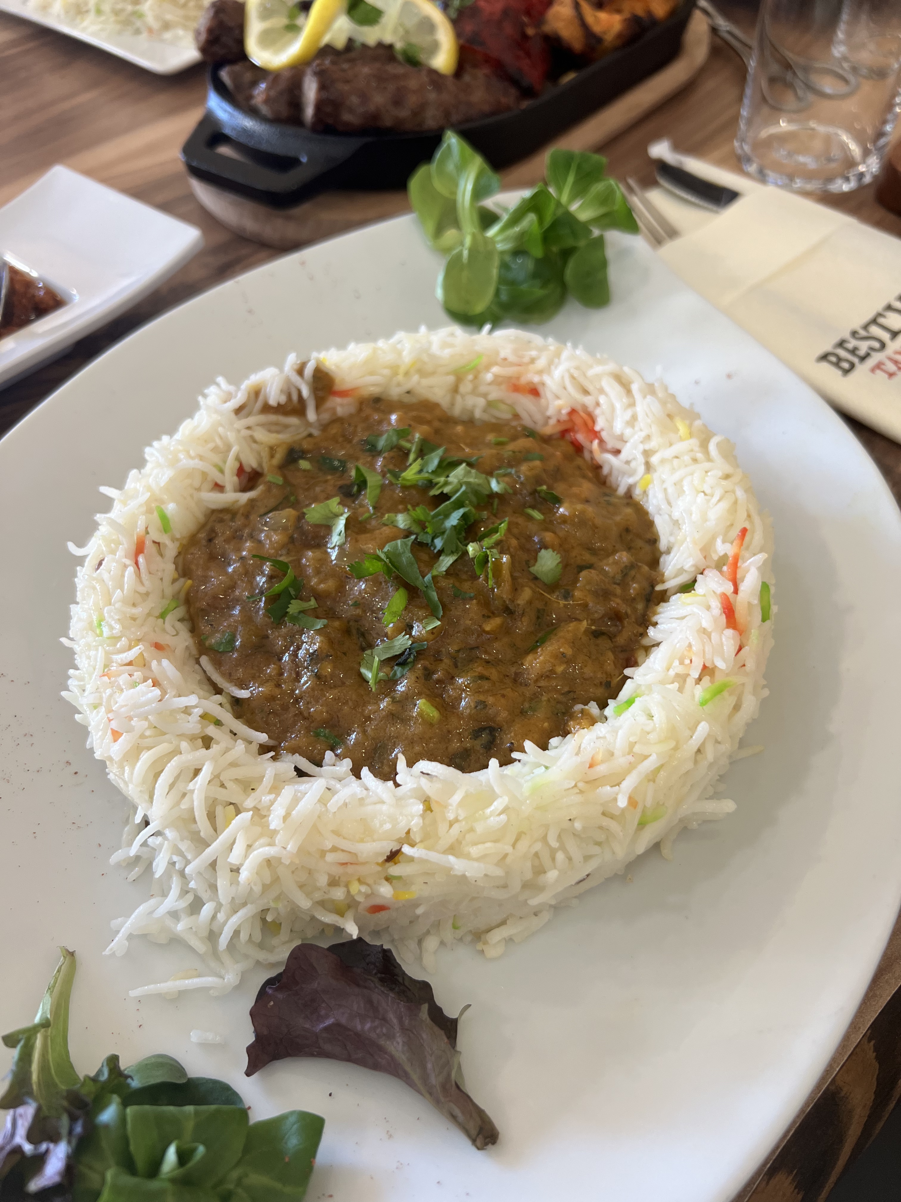 Bon restaurant avec un prix du menu et une attente correct. Le riz et le poulet avaient bons goûts, en revanche le seekh kebab était un peu sec. Malgré tout, une bonne présentation des assiettes étaient présentes. Le personnel est courtois et poli.