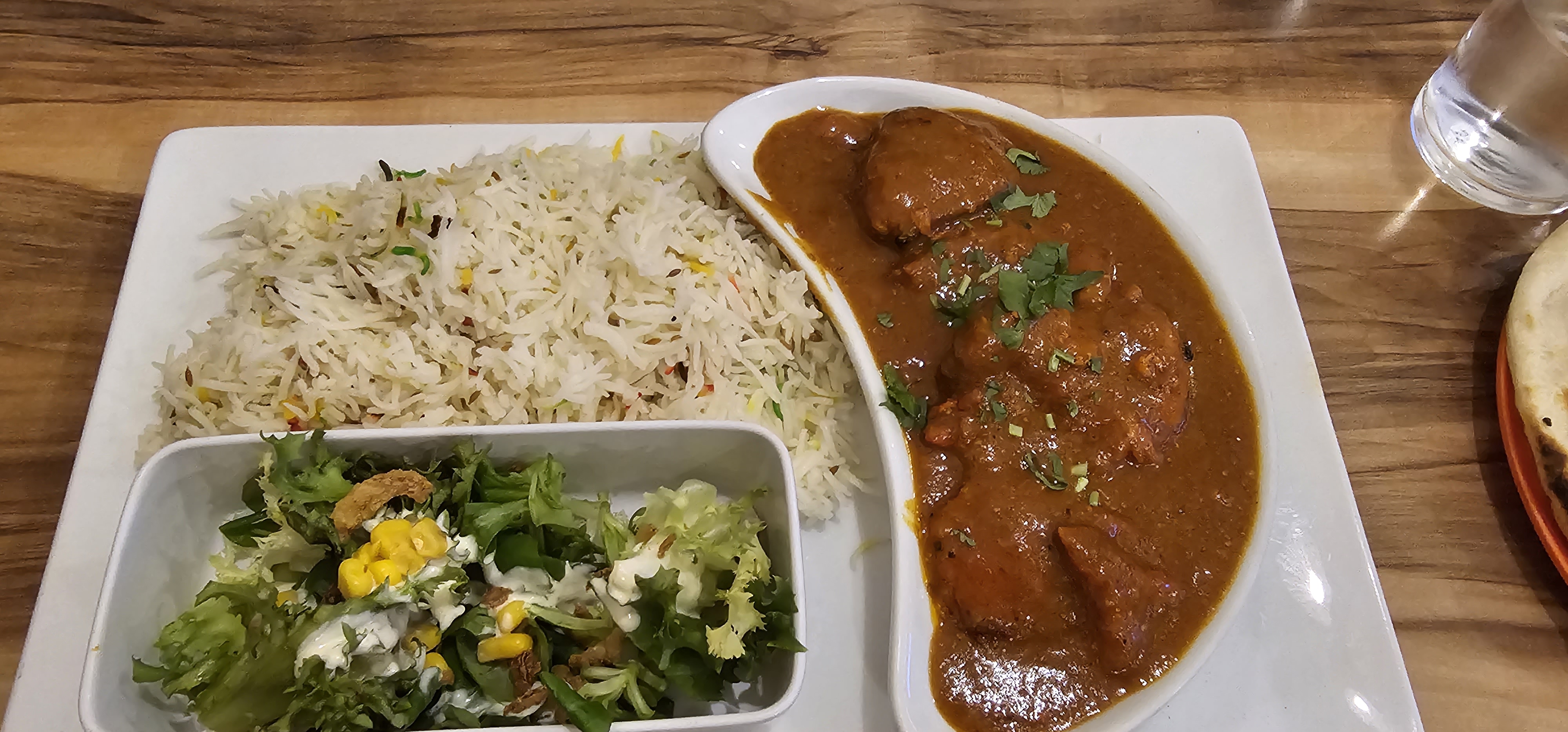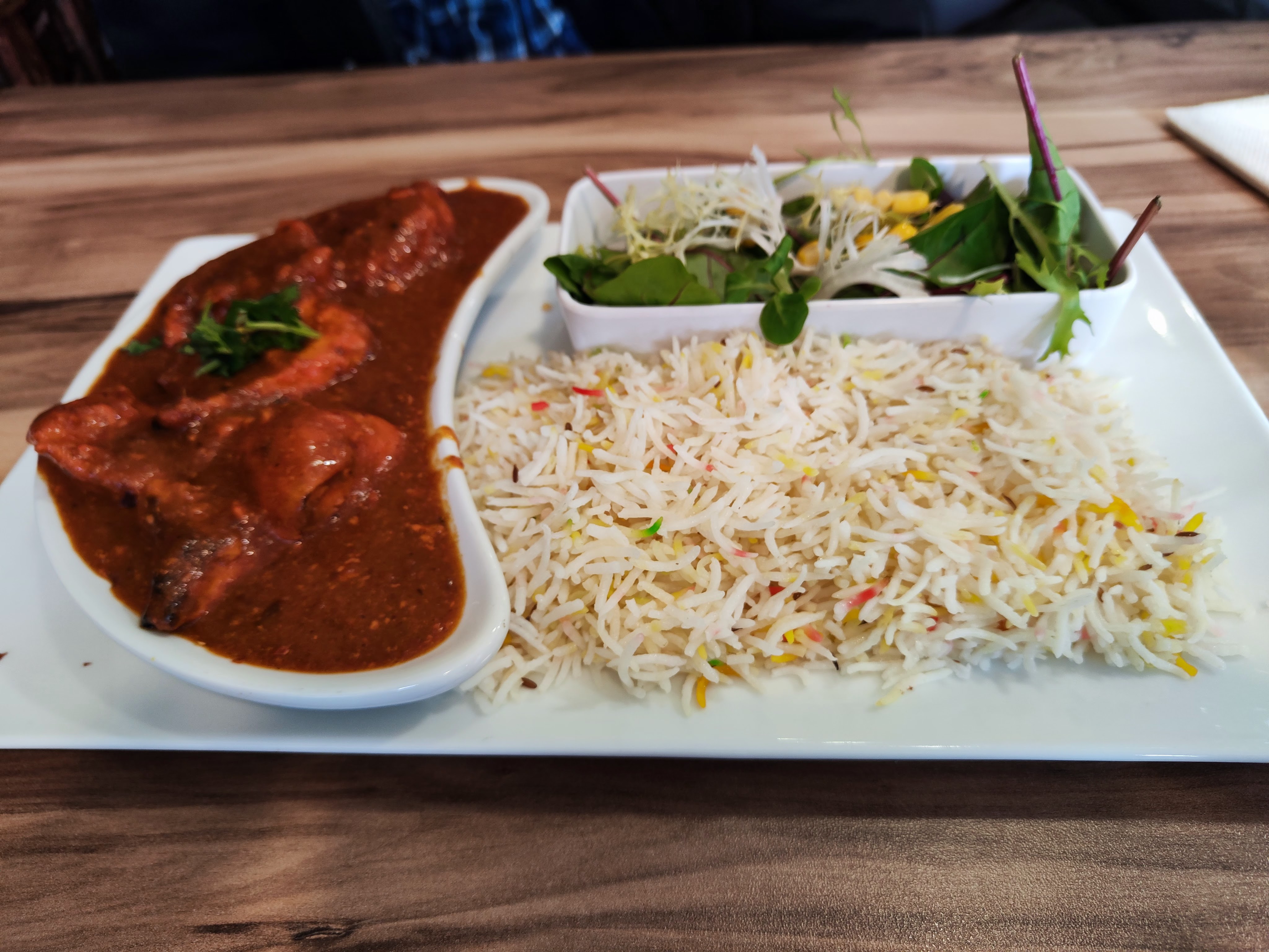 Bien que nous fûmes arrivé avant l'heure et tôt , nous avons été accueilli avec gentillesse. Le service a été impeccable et le personnel d'une grande efficacité. Poir le repas l'entrée mixte a été riche de saveurs et d'épices. Le Poulet Korma avec son riz basmati était riche de délices. Je reviendrai sans hésitation et je recommande ++++
