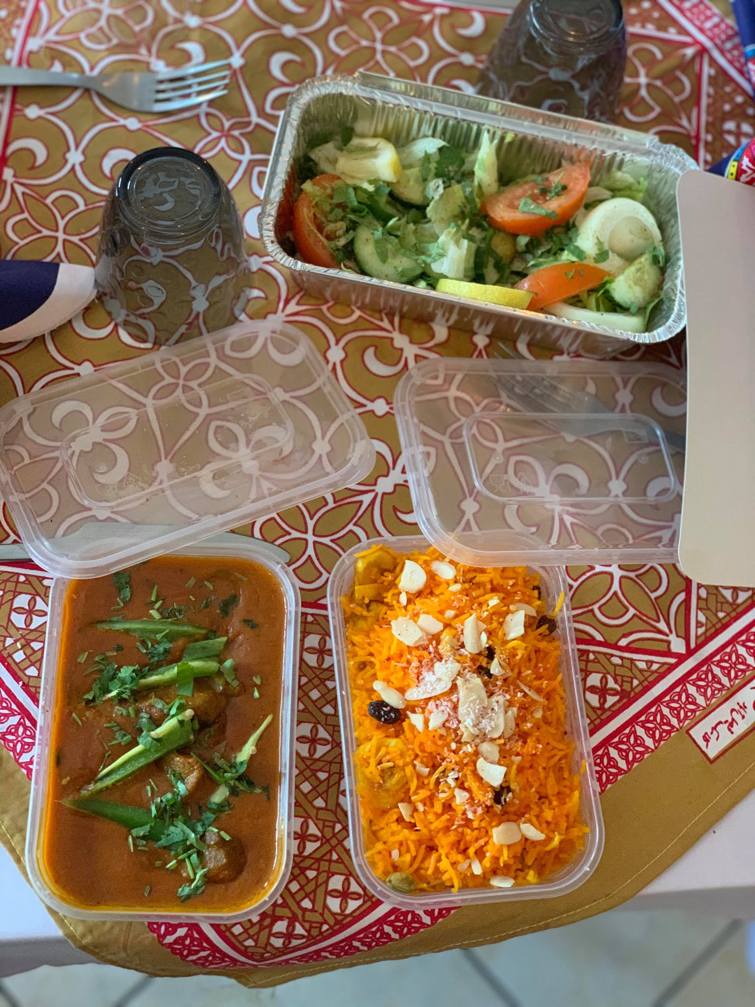 un accueil courtois et très convivial, les informations que nous fournissons sur nos préférences culinaires sont écoutées et prises en considération lors de l'élaboration des conseils. l'odeur succulente des plats nous est arrivée avant même de voir les préparations. une cuisine copieuse et délicieuse, tout est préparé soigneusement dans des boites et contenants, personnel courtois et à l'écoute. Dommage de ne pas pouvoir manger sur place cause des restrictions, mais nous y retournerons avec plaisir . Arrivée à la maison, les plats réchauffés et servis dans de la jolie vaisselle indienne:) , un délice à chaque bouchée. Nous avons pris l'agneau jalfrezi: viande bien fondante et une sauce onctueuse délicieuse, le biryani du chef avec agneau, poulet et crevettes succulent, le riz kashmiri bien parfumé et délicieux , la sauce raïta bien fraîche et se mange sans faim, c'est sans aucun doute une de nos très belles découvertes de cette année covidesque ! nous recommandons chaudement .