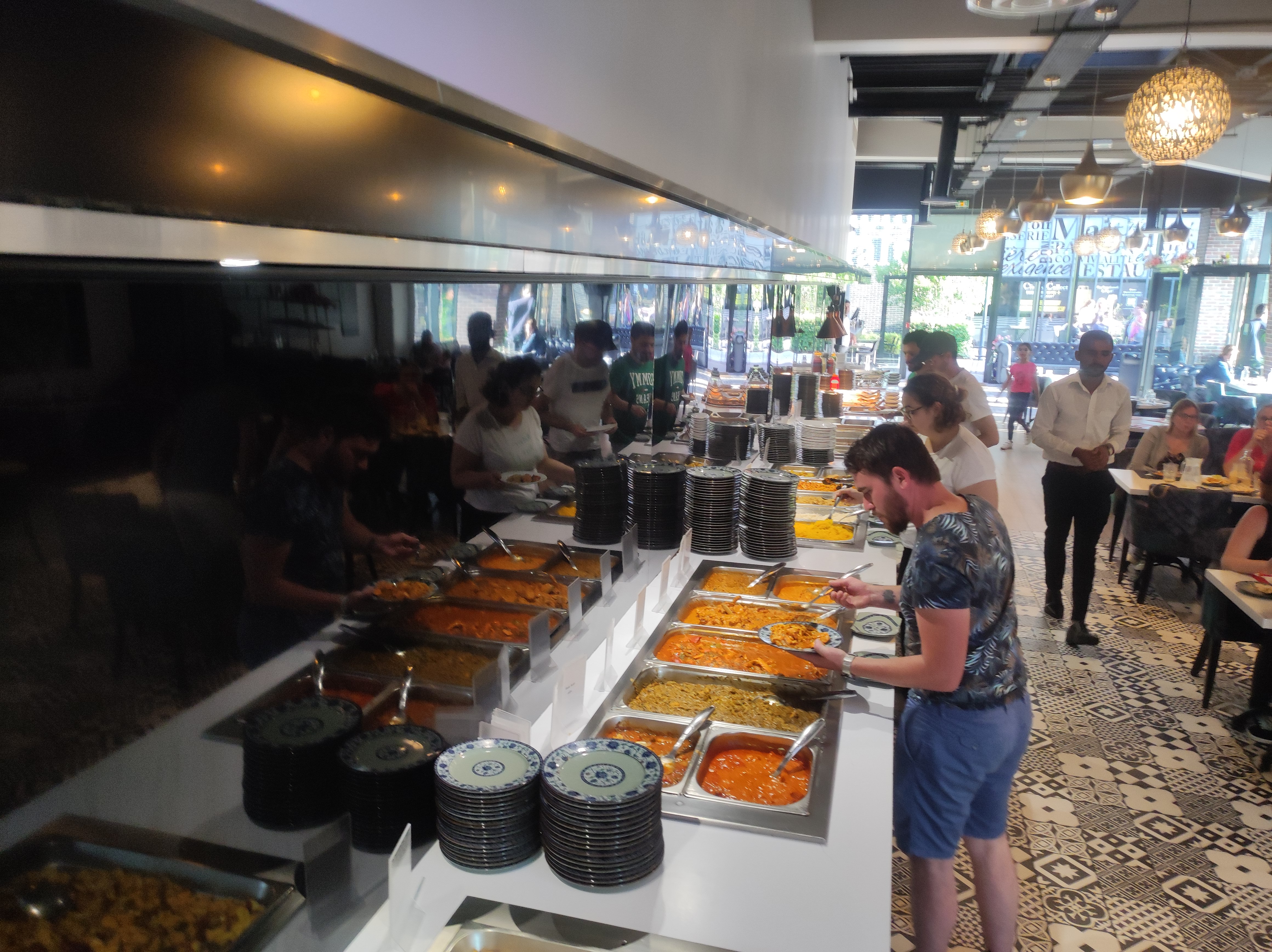 Le buffet est très varié et chacun trouve le menu de son choix à composer. Les plats sont délicieux, les lassis très bons et les nans sont excellents. Je recommande.