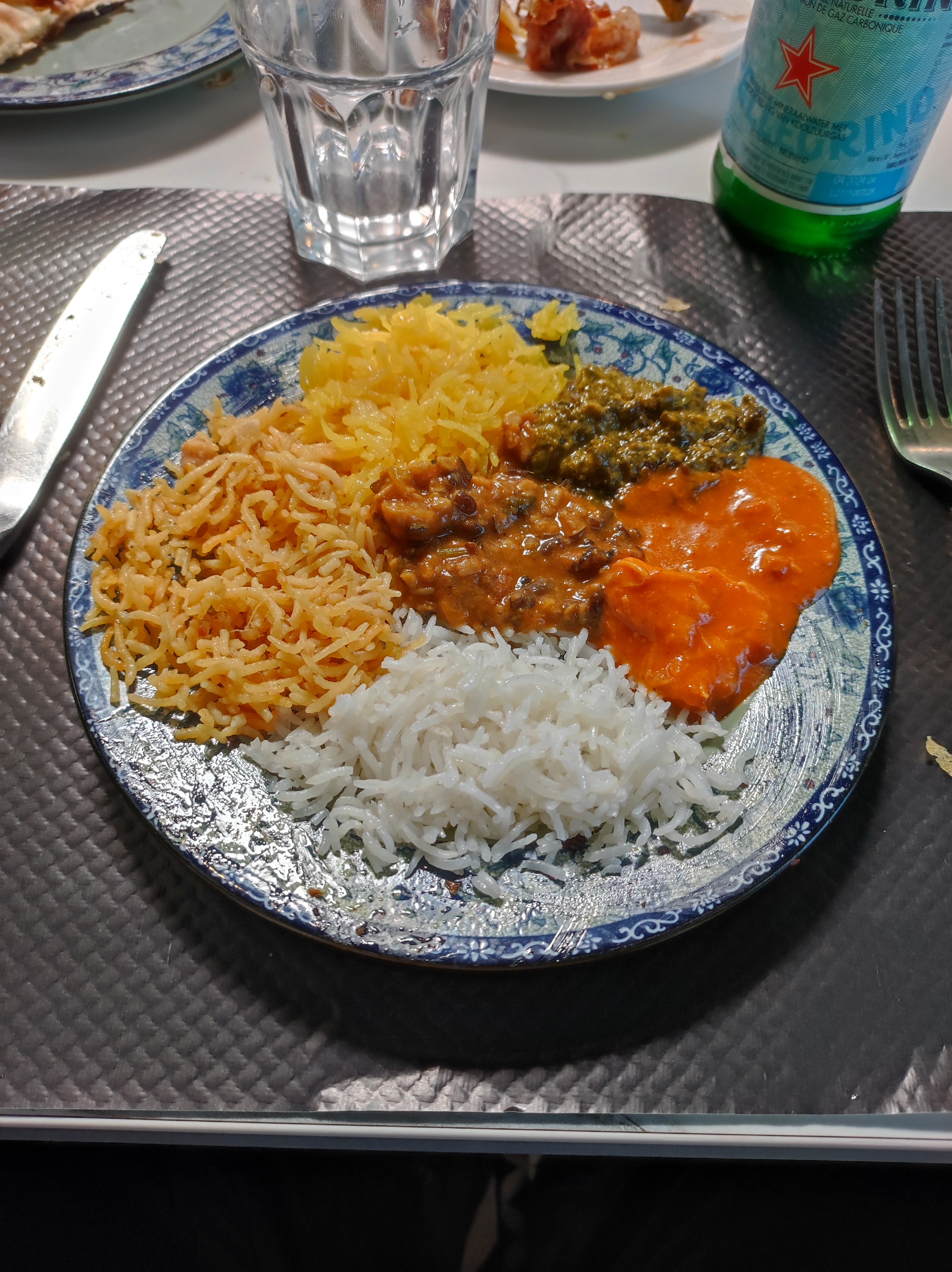 Je suis mitigé, la nourriture est très bonne, néanmoins le prix me parait excessif par rapport à la taille et le choix du buffet. Ils disent buffet a volonté mais il faudra y ajouter la boisson si vous souhaitez boire autre chose que de l'eau ainsi que les naans qui me semblerai logique d'intégrer au buffet. Autrement le personnel est sympathique et ils nous ont même offert un naan au fromage et un naan au nutella