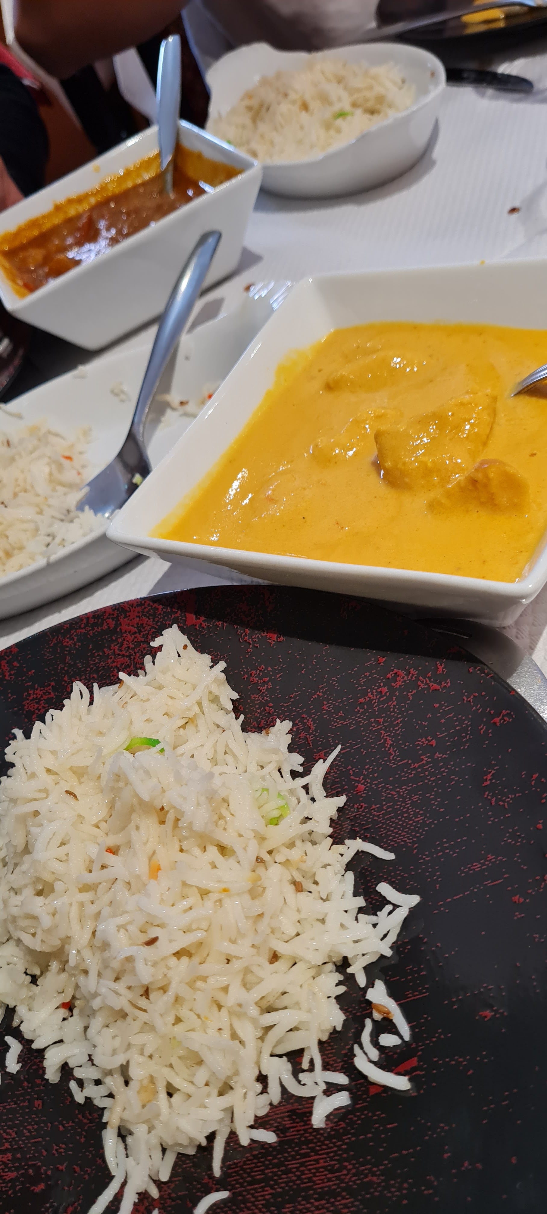 Plus jamais On a commandé pour emporter, au téléphone la personne qui a pris ma commande m’a prévenue qu’une portion de riz était offerte, niquel jusque là. Mon mari est parti chercher la commande déjà plus de riz offert on lui a répondu que le riz était déjà compris dans le plat.. on a pris un agneau korma avec riz (celui logiquement offert) et un crevettes biryani donc pas compris la réponse de ce monsieur. Mon mari a eu 4 morceaux d’agneau qui baignaient dans la sauce, et moi mon biryani ressemblait plus à une paella loupée qu’autre chose je connais bien les plats ayant travaillé dans un restaurant Indien et nos plats n’étaient pas du tout cuisinés comme ils auraient dû l’être.Mettre 30euros pour ça vraiment vaut mieux aller sur Cookidoo et se le faire à la baraque au thermomix! Donc à fuir.