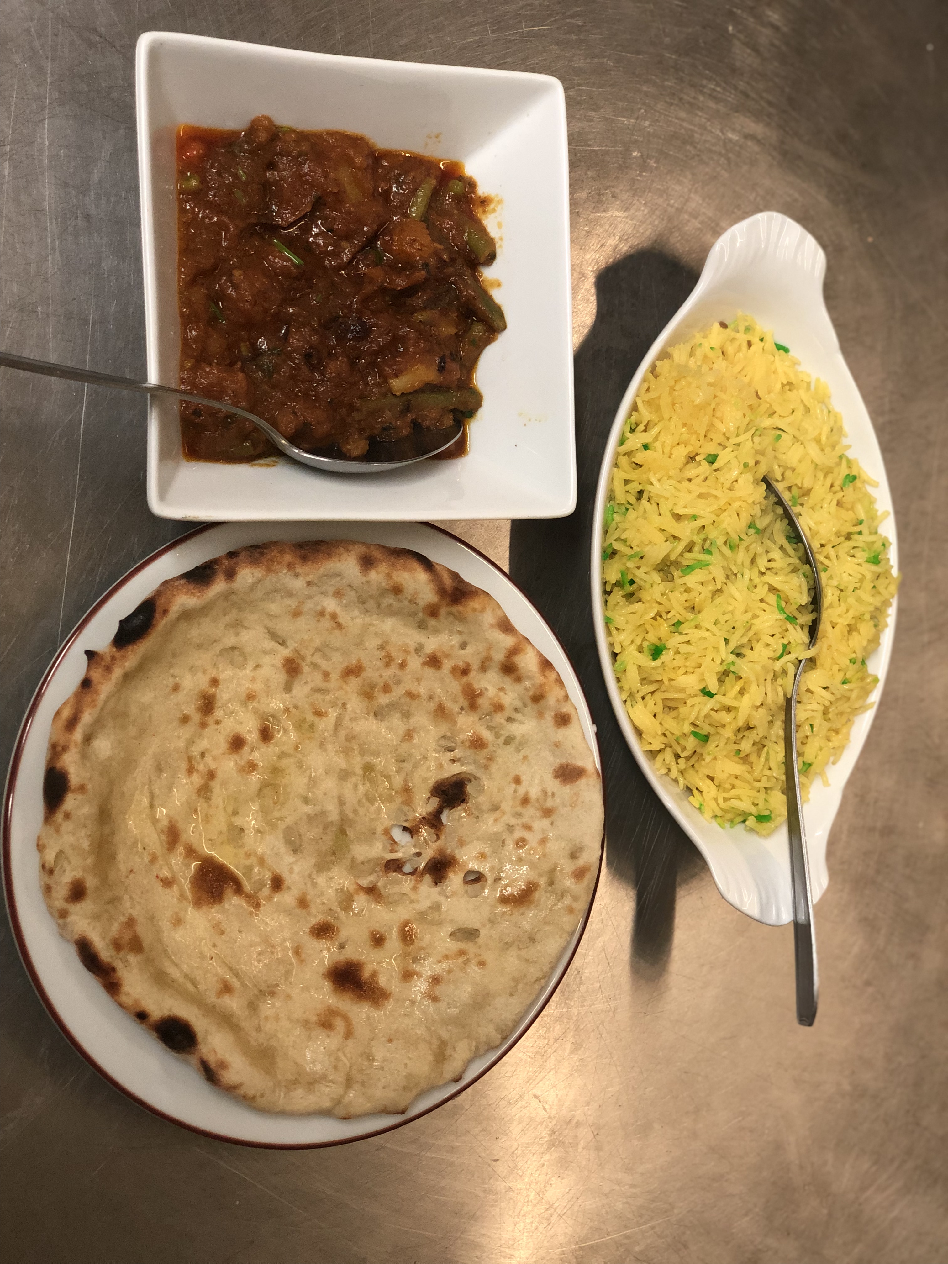 Petit restaurant indien qui ne paie pas de mine mais dont la cuisine est pleine de saveurs, les différents types de plats et leurs provenance sont bien expliqués ! À recoma der chaudement pour voyager sans aller trop loin !