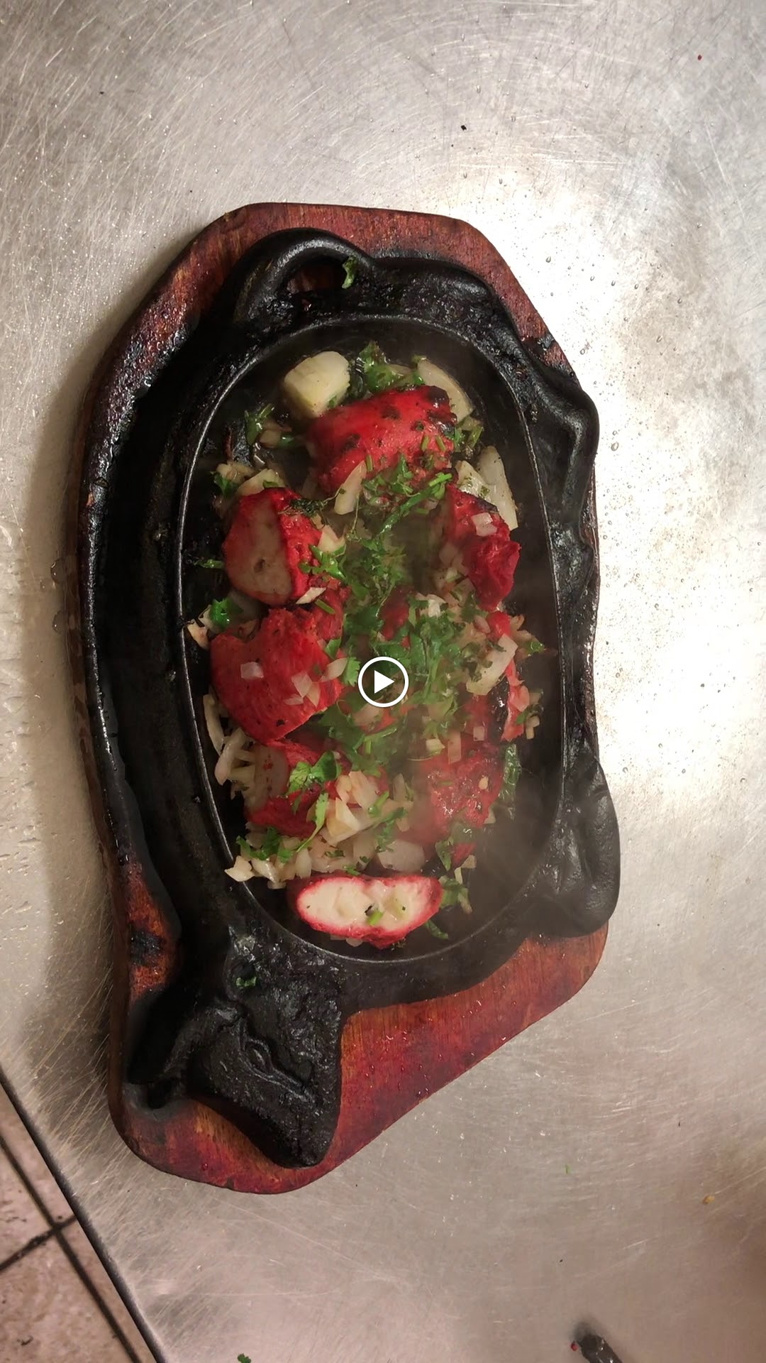 55e pour deux plats avec une grosse quantité de sauce oú nagent 4-5 bouts de viandes dures, mal cuites J’adore le piment (surtout dans la cuisine indienne) mais il n’était là que pour cacher le manque de saveur Les garlic cheese nan étaient apparement sans ail ni fromage, et une entrée mixe où honnêtement tout était fade, froid, sans texture (à part les samossa) Une grande déception, surtout au rapport qualité/prix