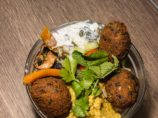 Wraps et bowls très bons, inspirés par la cuisine indienne. Prix très attractifs pour de la nourriture plus haute gamme qu'un simple fast Food. Le lassi a la mangue est top, super goût de fruit et pas juste blindé de sucre. Personnel vraiment charmant.