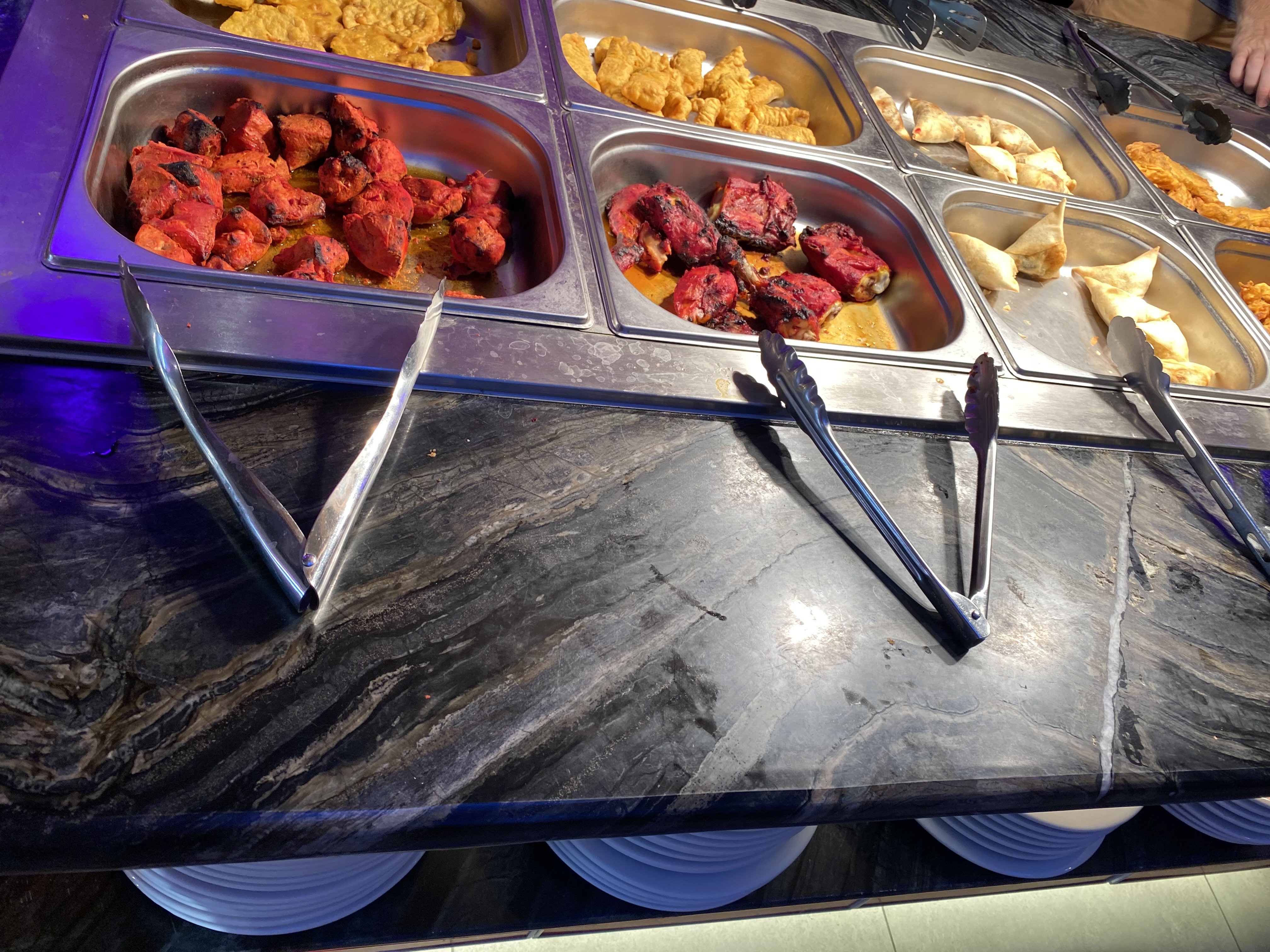 Offre de buffet très limité et que a base de poulet. Ni.poisson ni agneau (base de la cuisine indienne) Samoussa pâte texture pas du tout croustillante et insipide Poulet sec et peu goûteux, buffet de dessert insipide Qualité prix médiocre