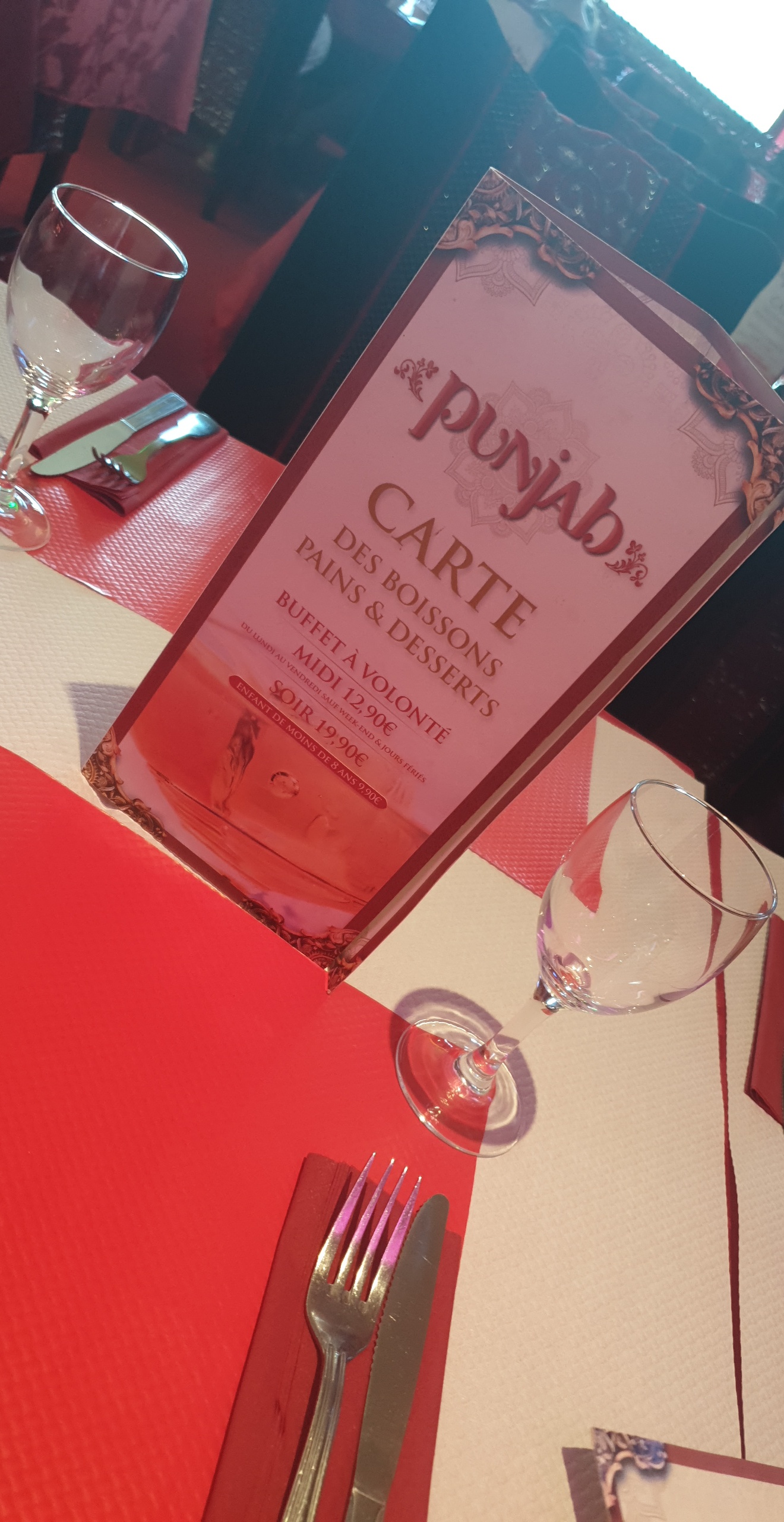 Le restaurant est propre (les WC aussi) personnel aux petits soins. Les plats sont délicieux, parfumés...cela permet de goûter différent plats que nous n'aurions pas osé prendre à la carte de peur d'être déçu. J'ai pu goûter autre chose que le butter chiken. Je recommande niveau qualité prix en buffet le midi en semaine, c'est vraiment avantageux. Nous reviendrons avec plaisir, c'est sûre.👍