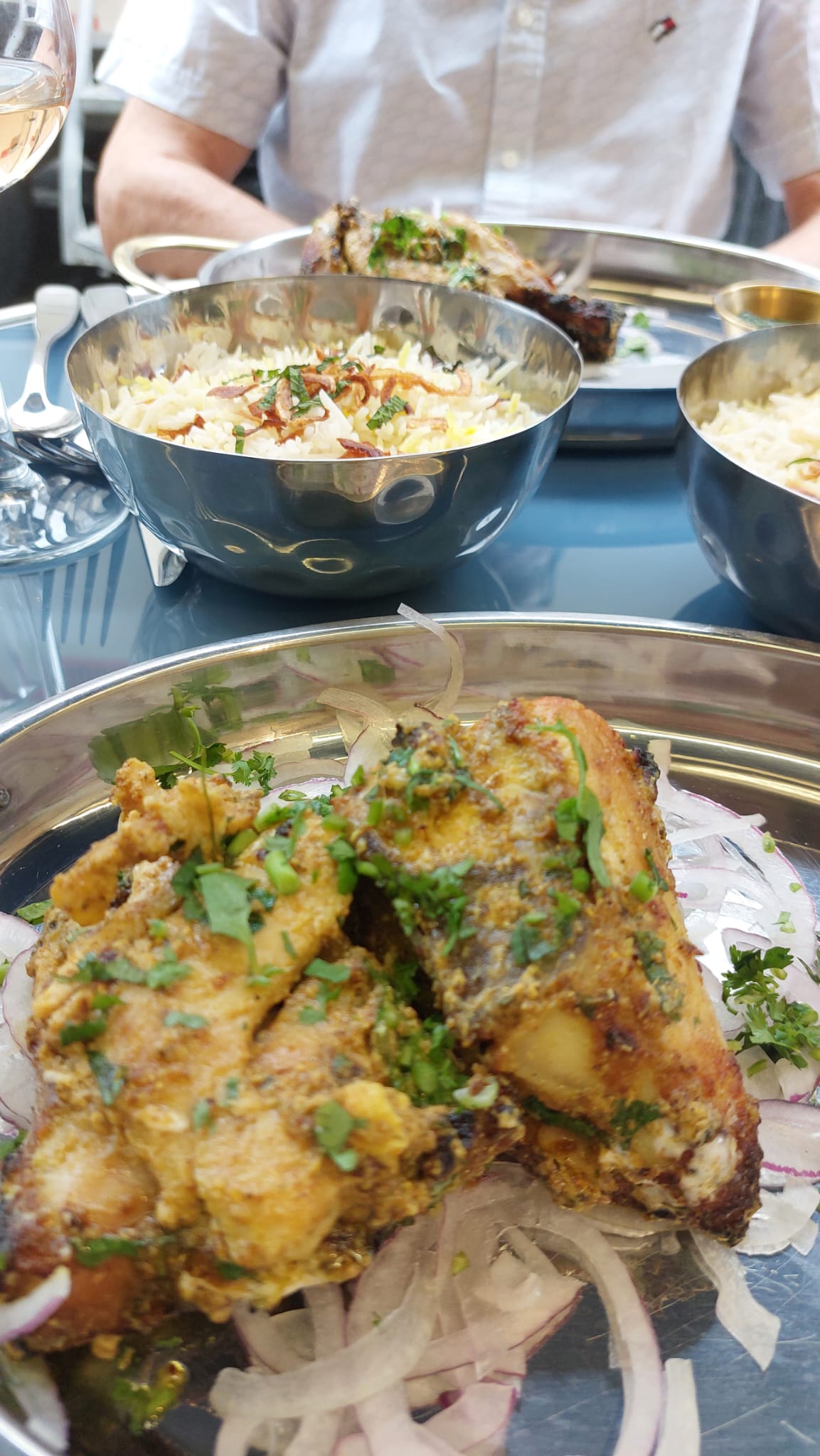 Très sympa et très bon, nous avons passé un très bon moment, serveur attentif. Prix tout de même un peu élevé et un peu déçue par les naans. J'y reviendrai avec plaisir !