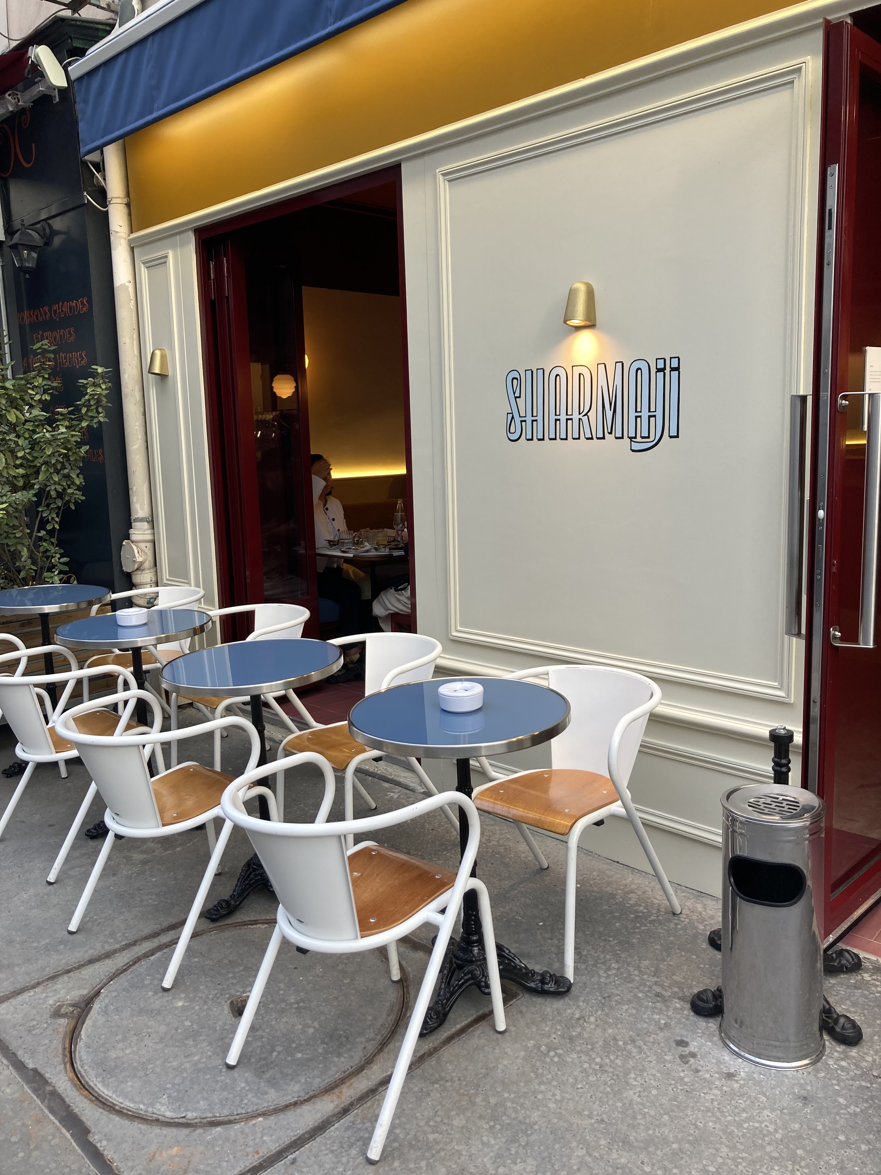 Nous passons devant le restaurant à 18h et demandons s'il est possible d'avoir une table en terrasse à 20h. Un serveur nous dit qu'il nous réserve une table. Nous revenons à 20h, la terrasse est pleine et un autre serveur nous assure que les tables en terrasse... ne sont pas réservables ! Mettez-vous d'accord, ça nous évitera de faire de la route pour rien... En guise de compensation, on nous propose une table... en sous-sol ! Pas vraiment ce qu'on avait demandé (et ce qu'on nous avait promis). Résultat, nous sommes allés dîner dans un autre restaurant indien juste à côté, le Laxman, où nous avons été accueillis par un patron adorable et où nous avons passé un excellent dîner... en terrasse, et pour environ 3 fois moins cher qu'au Sharma Ji.