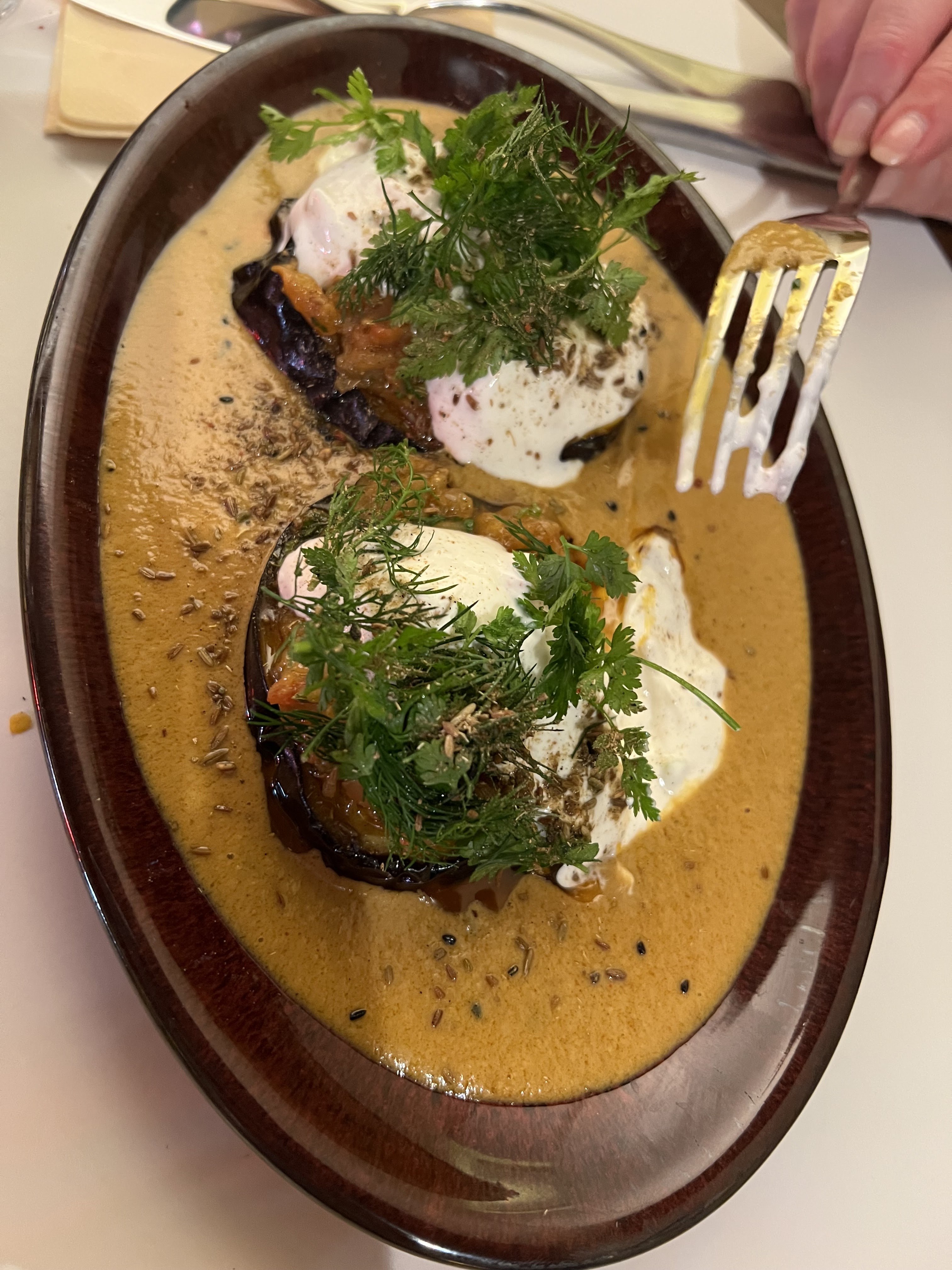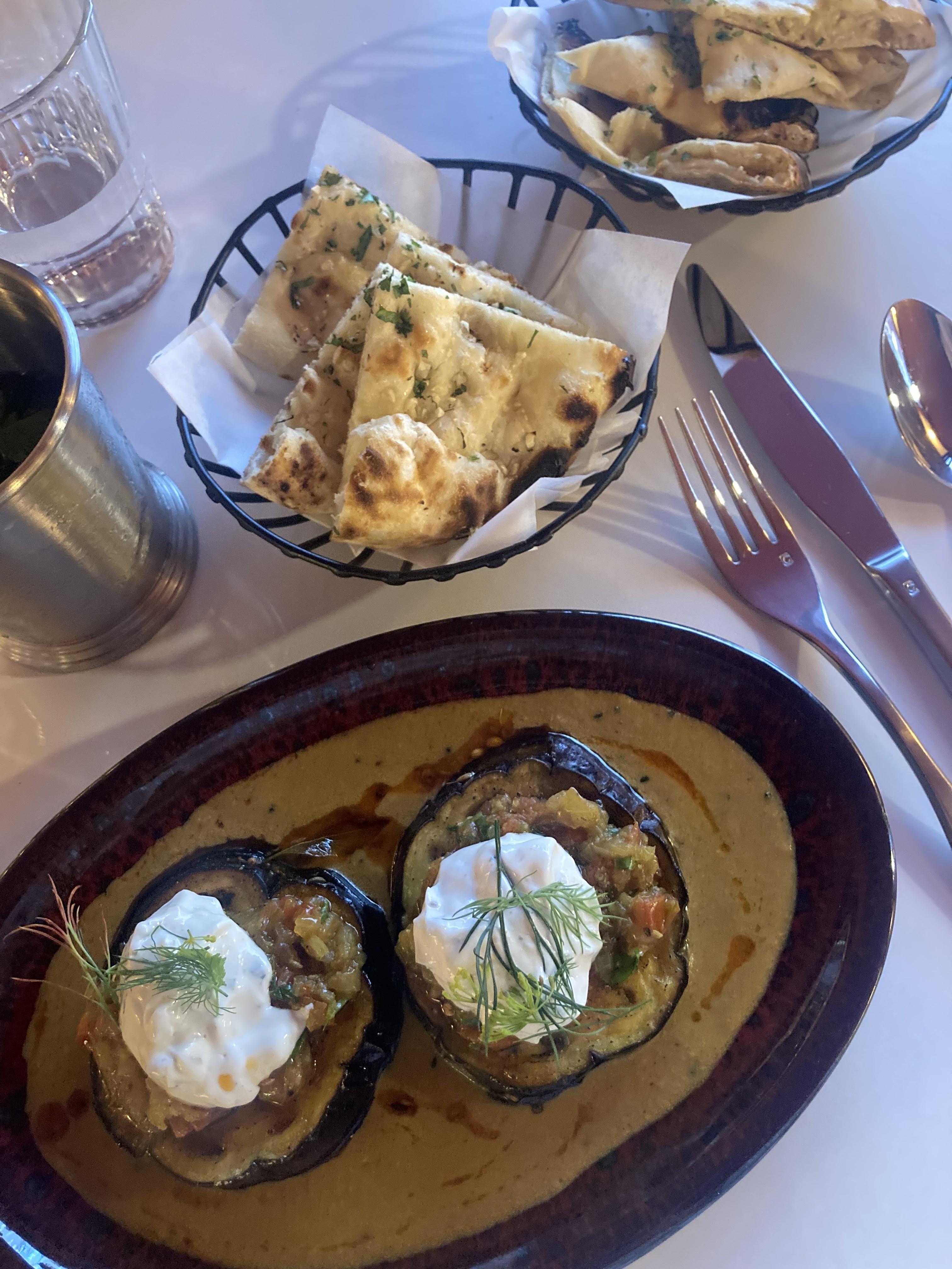 Très bonne cuisine indienne. Des nouvelles saveurs en dehors des standards. Et la cuisine est épicée mais pas piquante, sans arracher les papilles. Le poulet mariné était très parfumé. Dommage que l’on ne nous ai pas recommandé de prendre un accompagnement. Le plat végétarien aux aubergines était délicieux. Pas donné.