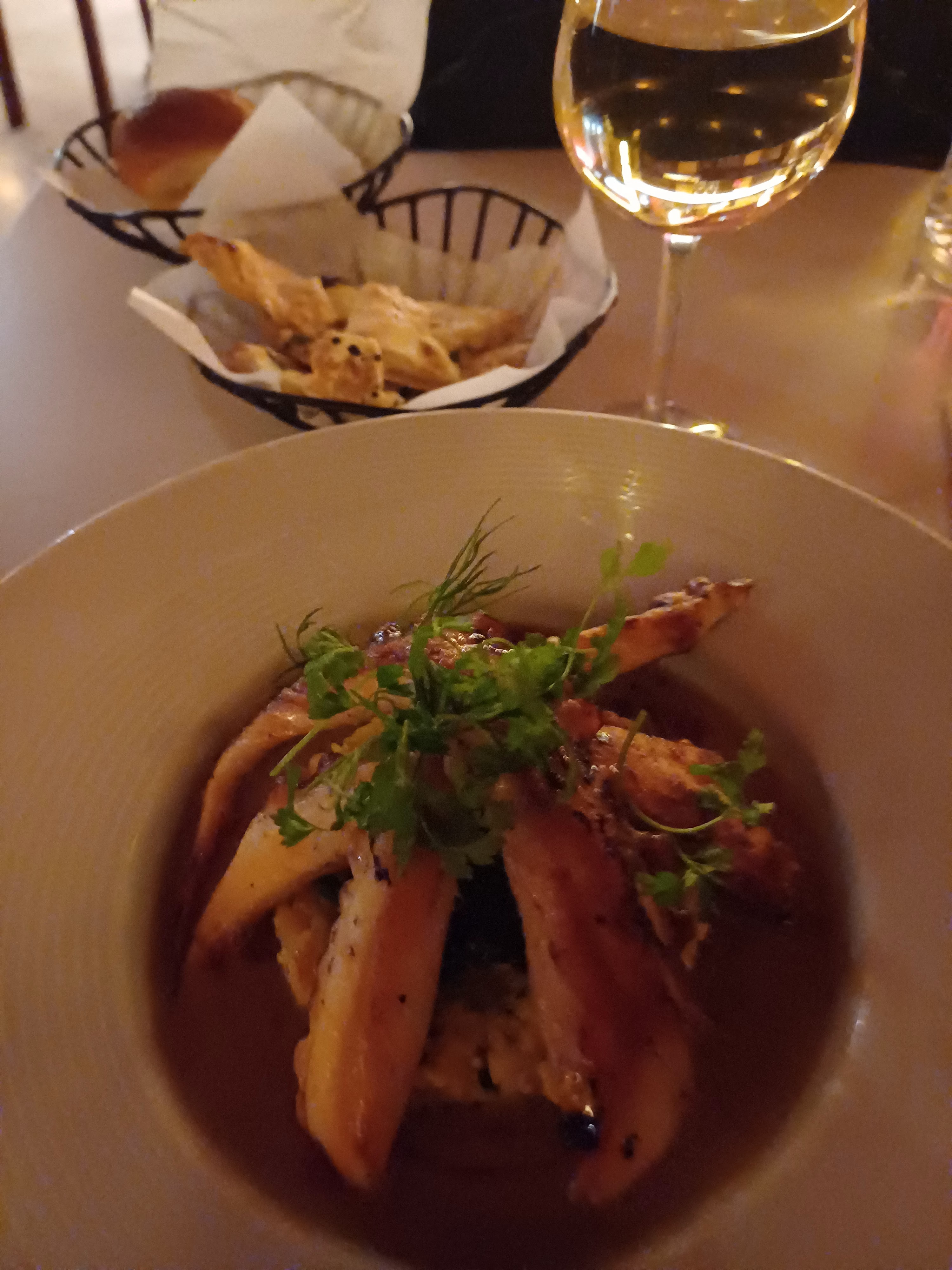 Dîner en couple/amis. Accueil incroyable, service merveilleux, explications claires, propositions judicieuses, douceur et bienveillance tout au long du repas. Et en plus, tou les plats étaient excellents ! Le restaurant mériterait peut être une ambiance un peu plus cosy. Nous recommandons!