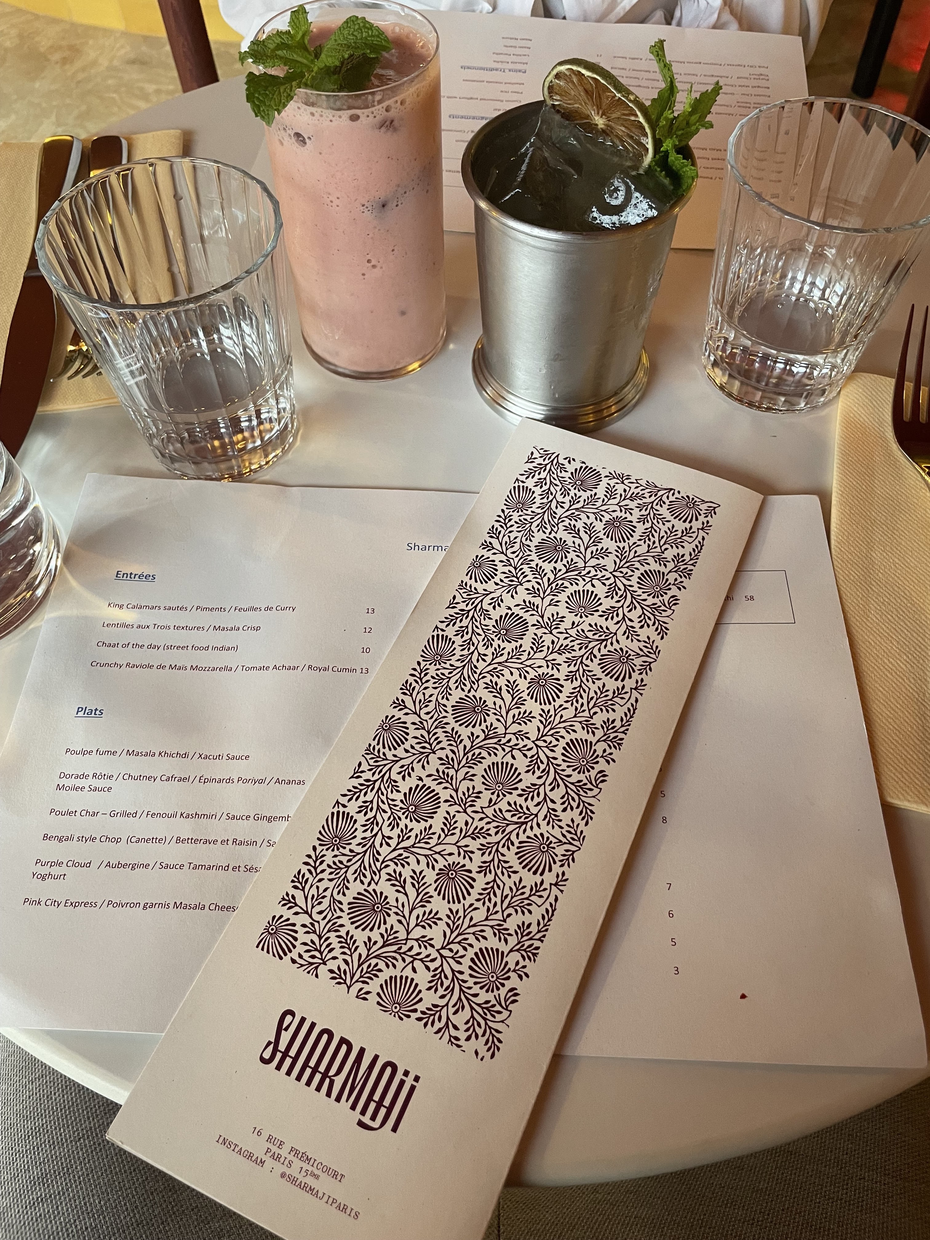 Excellente soirée passée au Sharma Ji. Une carte courte à l’opposé des cartes des restaurants indiens classiques. Les cocktails et les plats étaient absolument délicieux et le service très attentionné. Salle un peu bruyante mais c’est vraiment le seul défaut.