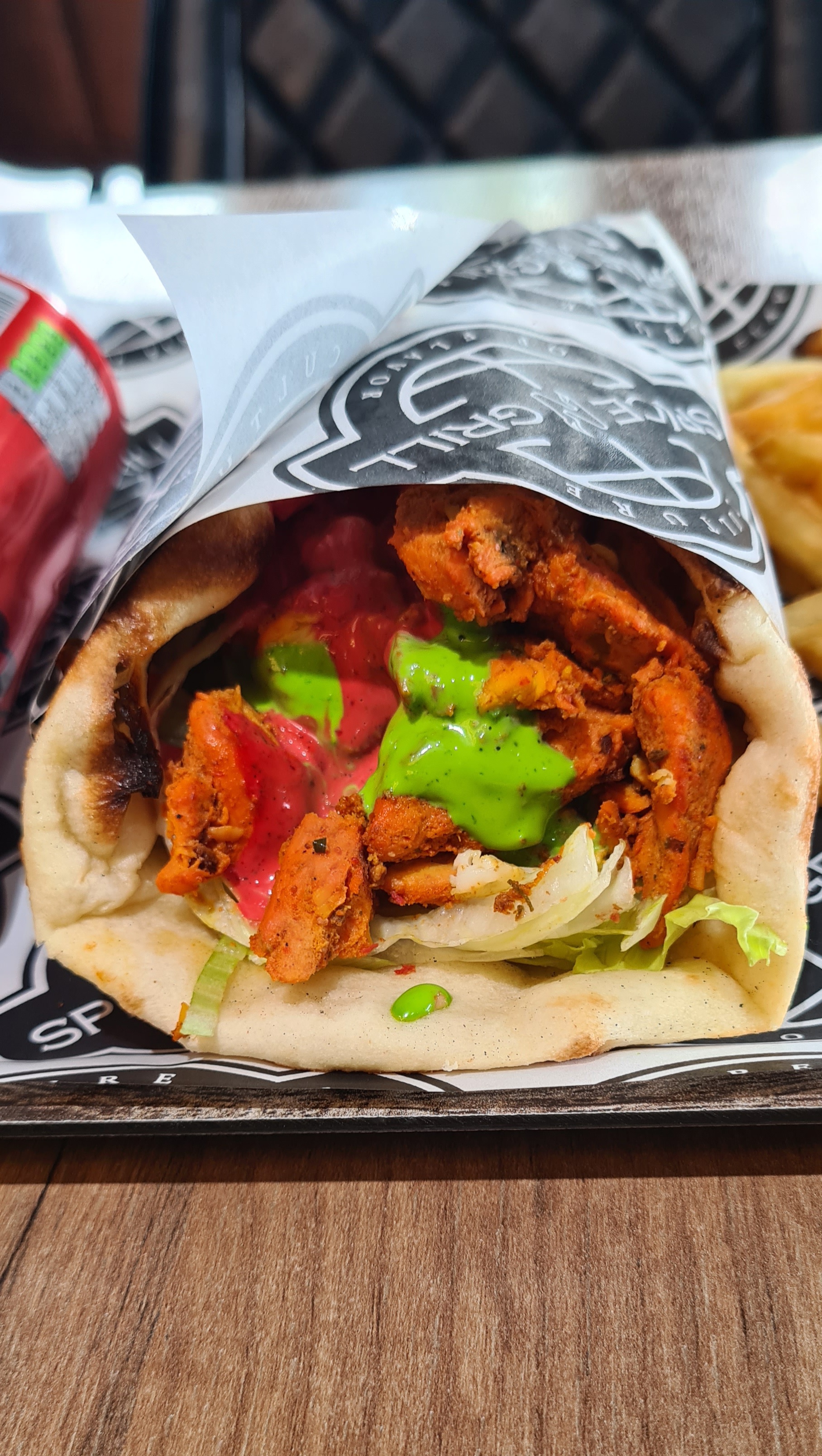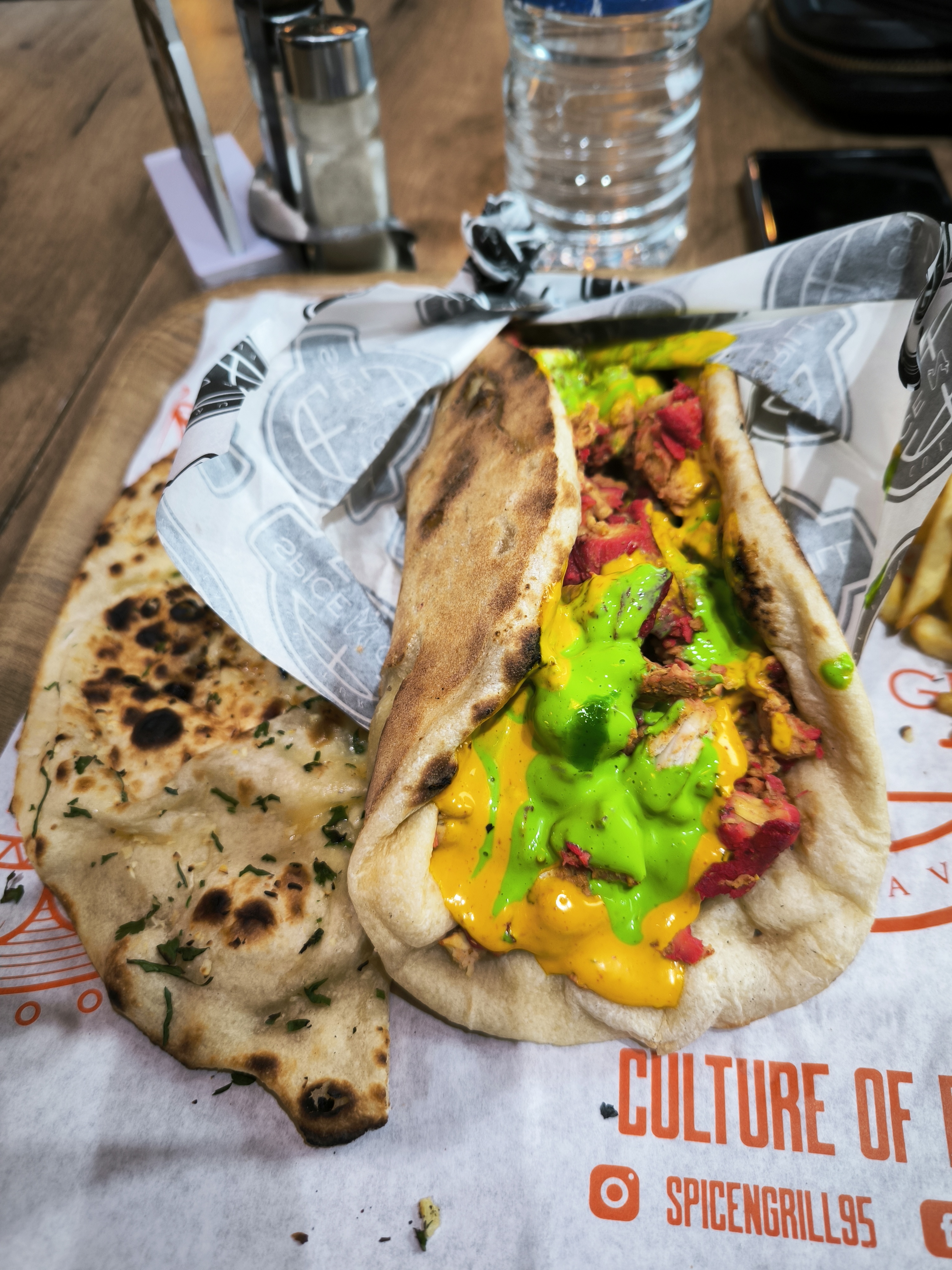 Une belle découverte. Le naan sont très bon et les choix variés. Il y en a pour tous les goûts. Les sandwich sont bien remplis et sont vraiment bons. La sauce verte et celle lemon-pepper est excellente! Un parking d'une dizaine de place est disponible. Préparation qui prend un peu de temps en revanche.