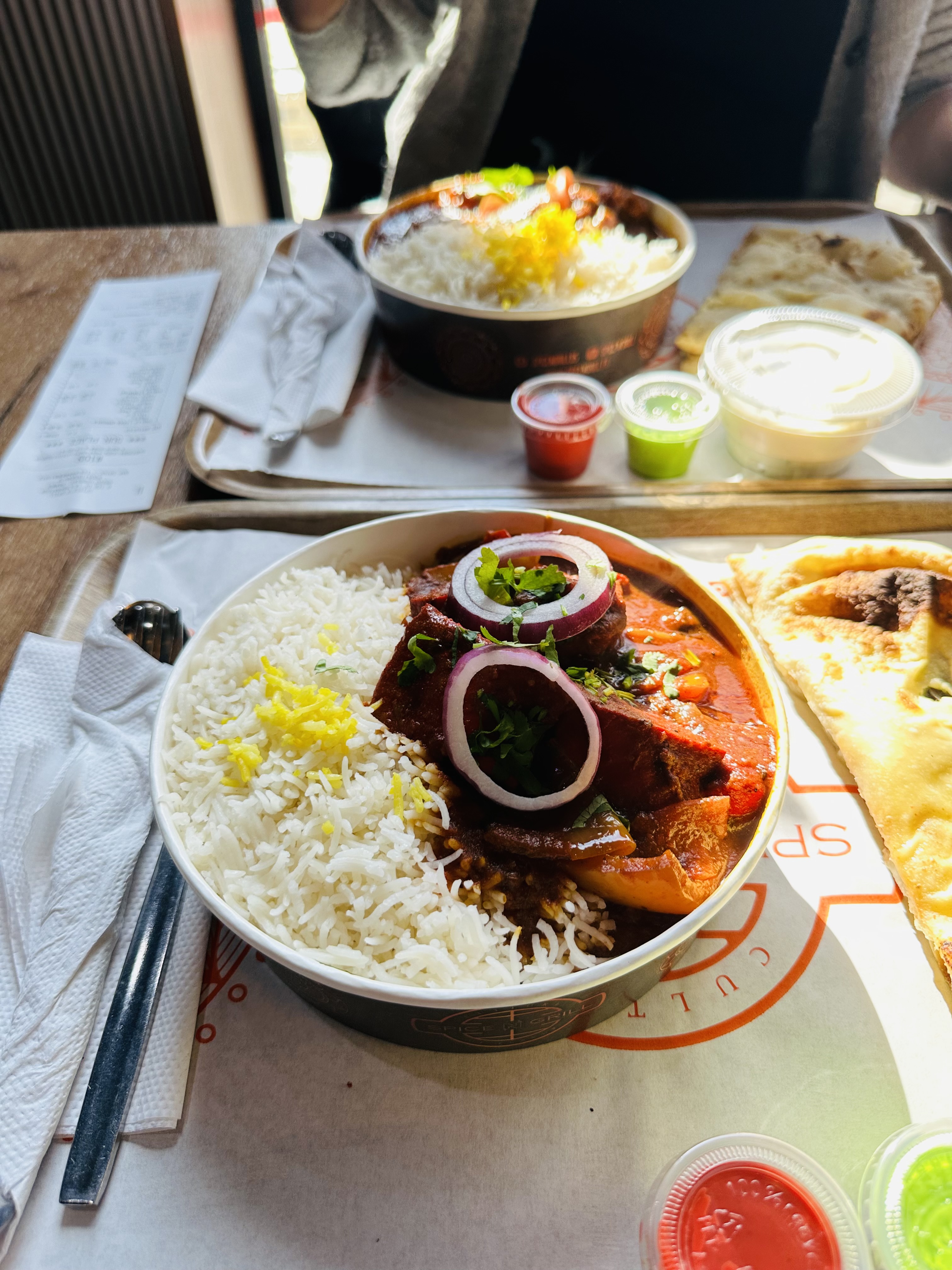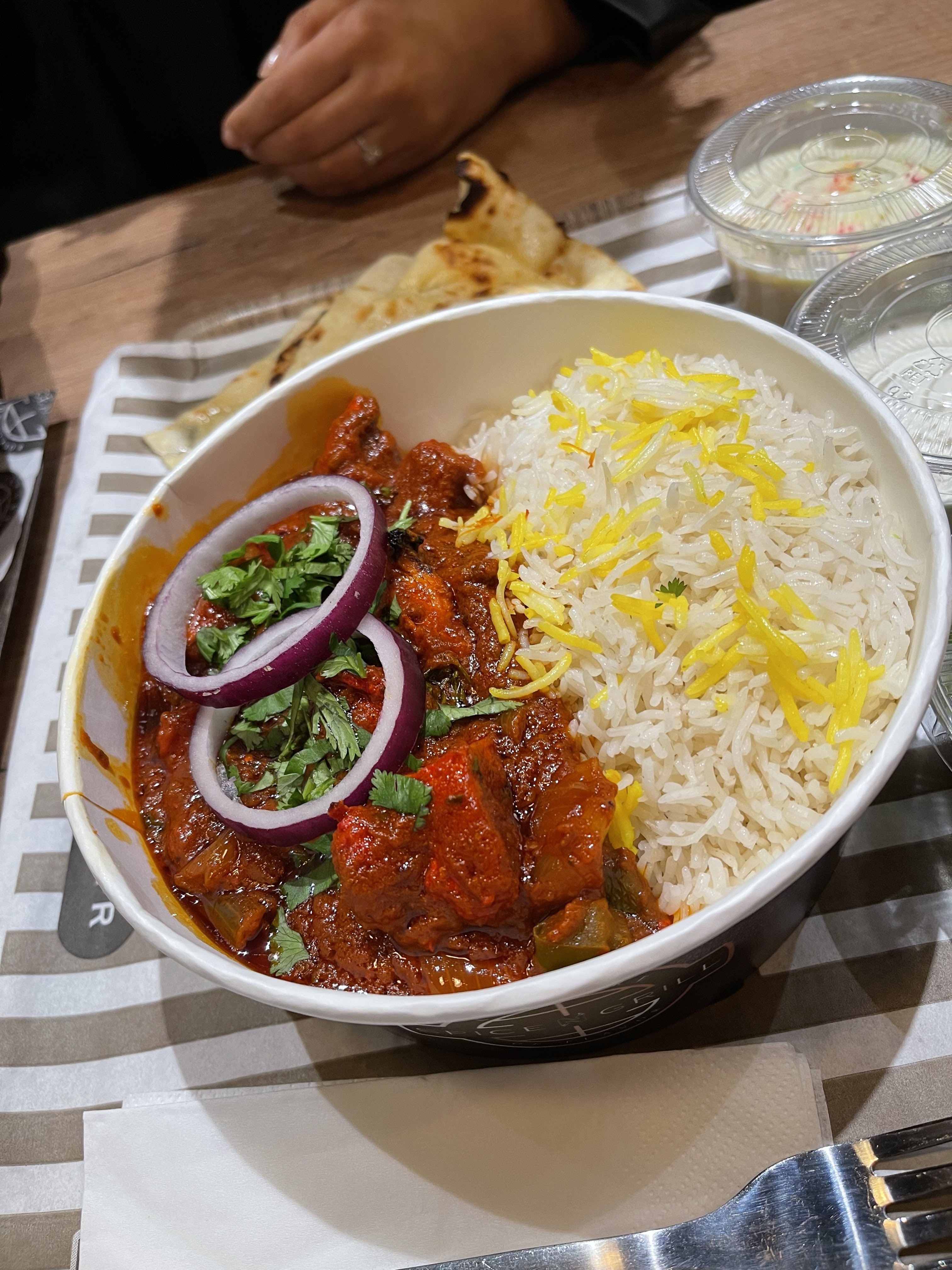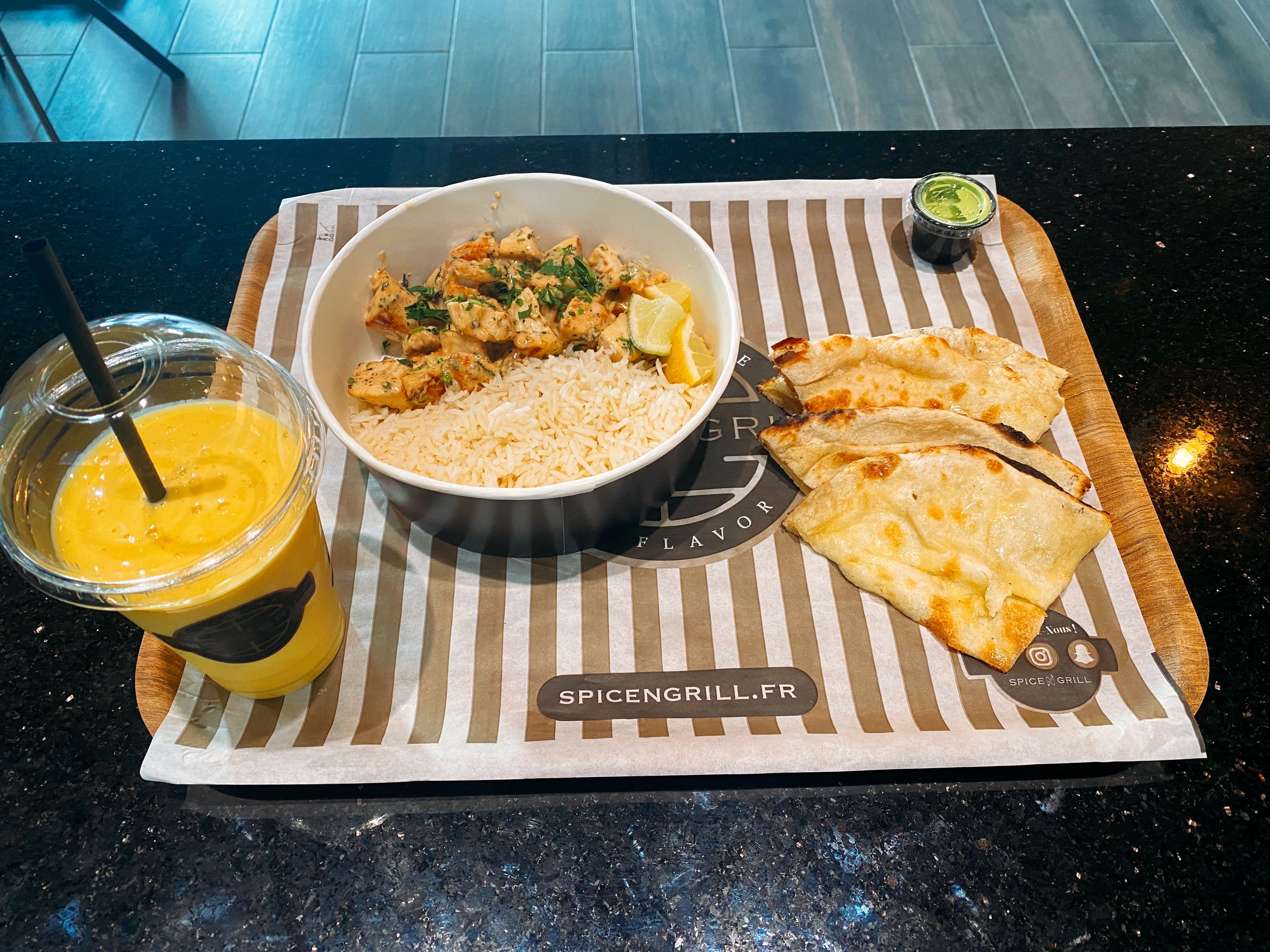 Une forte envie de découvrir les plats en surfant sur leur site Web...mais grosse déception en mangeant et surtout après. Bien que du monde y passe, on pourrait donc penser que c'est top... finalement seul le garlic cheese naan vaut le coup ! L'équivalent du butter chicken plâtre le ventre, les samoussas poulet sont secs, et au secours la digestion et l'estomac après. Nous y sommes allés à plusieurs et tous même résultat. Ceux qui ont le palais plus raffiné..passez votre chemin. Peur être que le sandwich c'est autre chose mais les bowl ...c pas ça. Dommage.