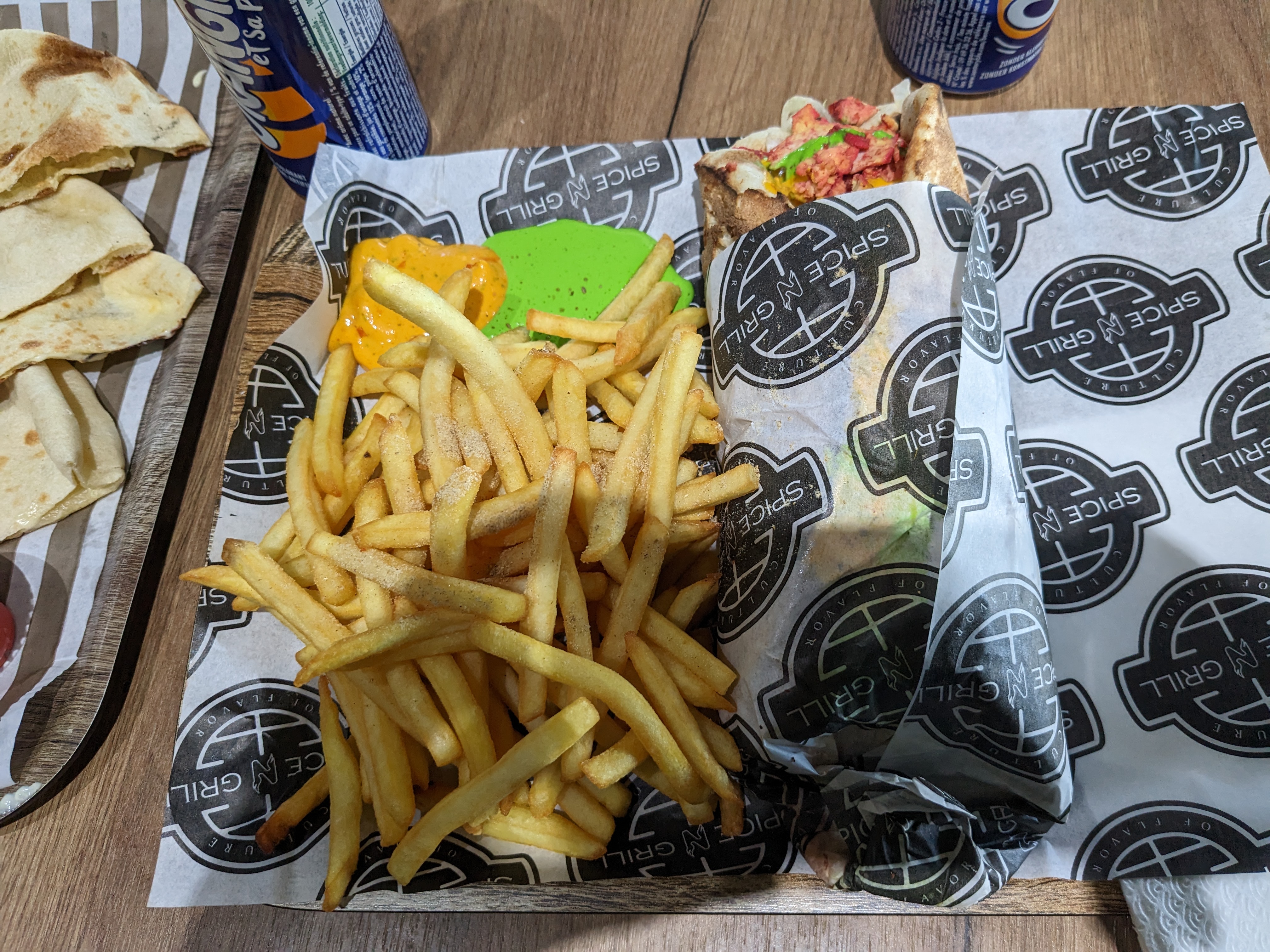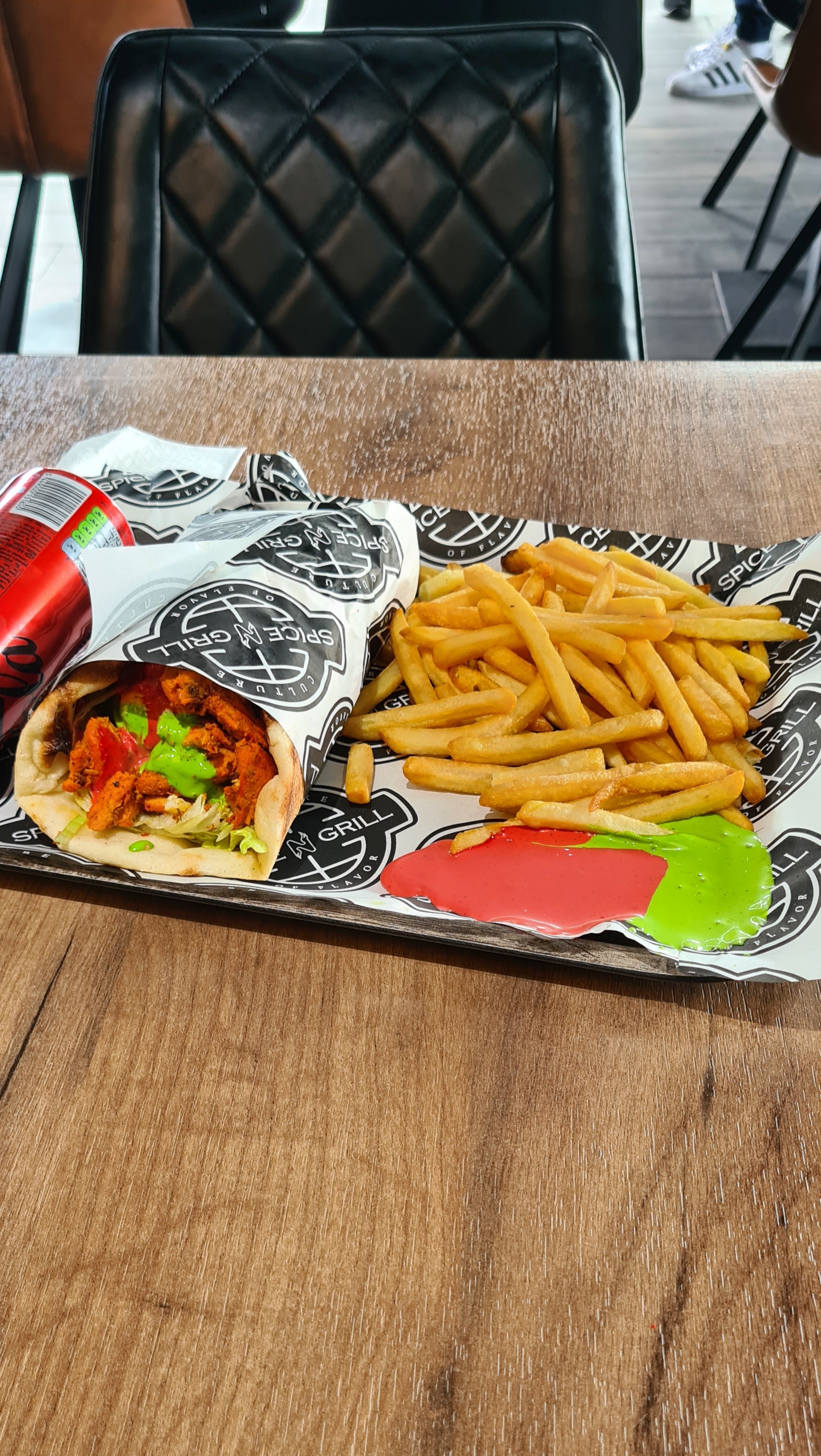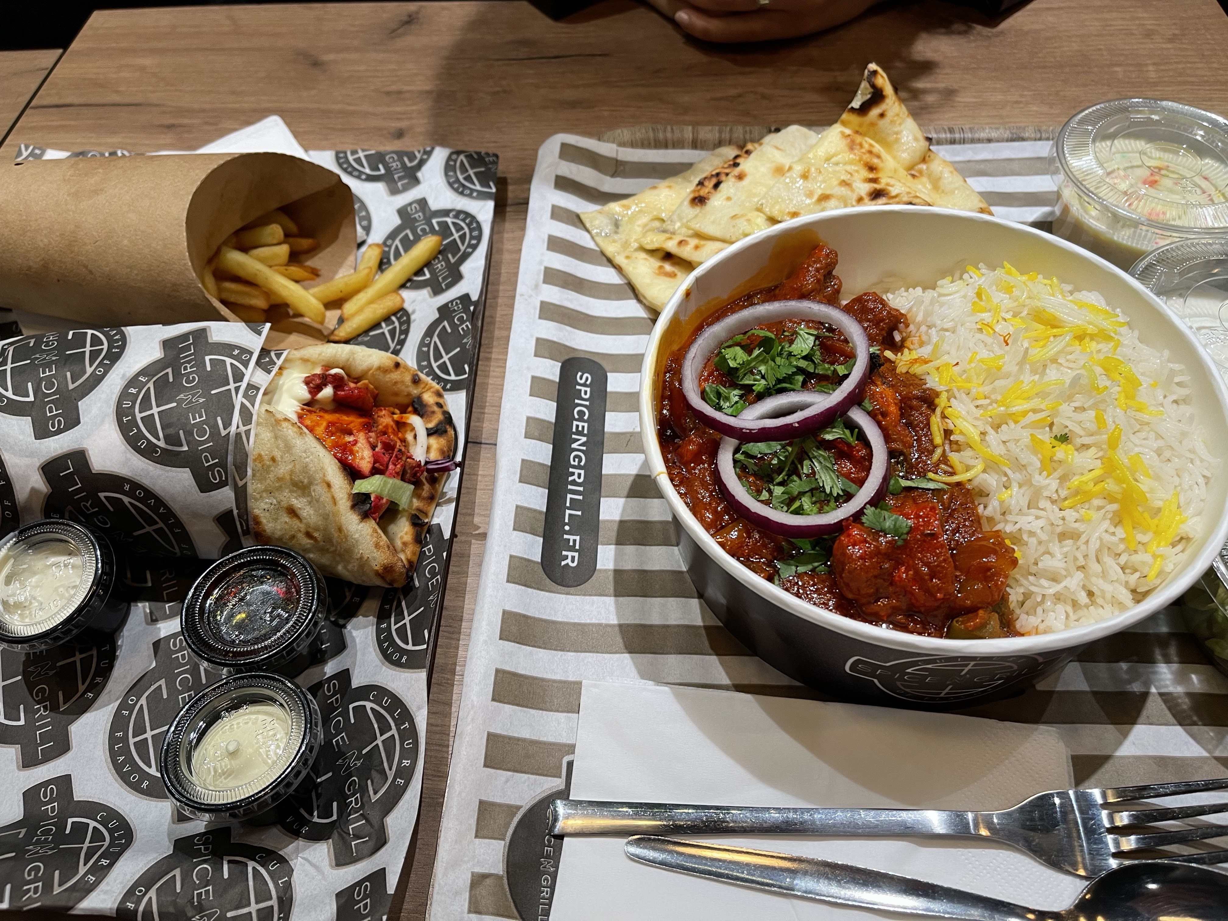 Très belle découverte, restaurant très sympa. Sandwich naan très bon et bien garni, frites épicées très bonne. Prix corrects. Le restaurant est spacieux avec une très belle et grande terrasse extérieure pour les beaux jours. Il y a également des bornes pour commander ce qui est top ! Nous reviendrons avec plaisir.