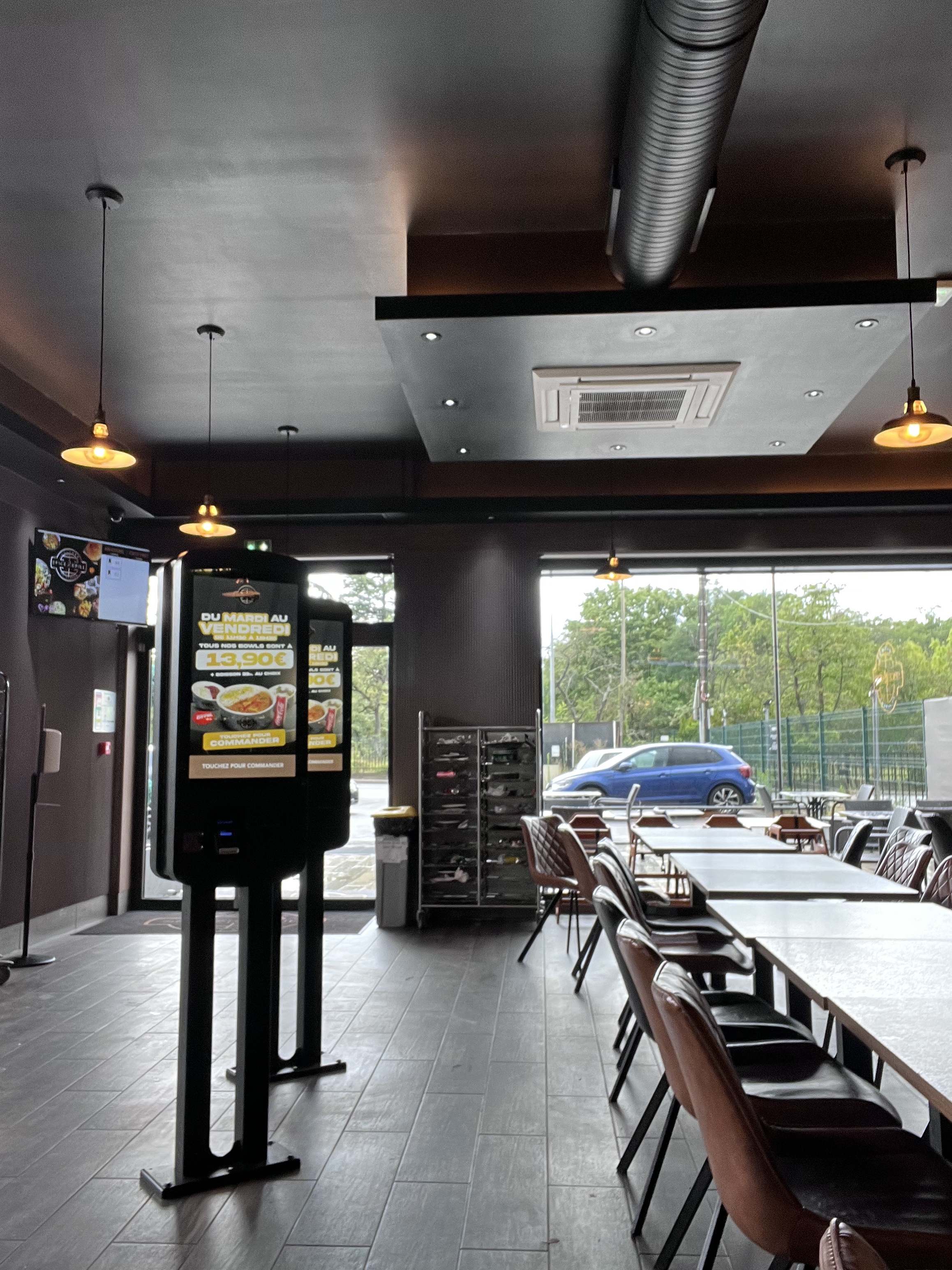 Restaurant accueillant, moderne et propre. Le parking est petit et rien pour se garer à proximité, dommage. On commande sur des bornes , ce qui est très bien car il y a les photos des plats. Le choix est important. Le temps d'attente est très rapide et le personnel sympathique. Il ne fait pas très chaud à l'intérieur ( pour les frileux). Je reviendrai pour tester d'autres plats.
