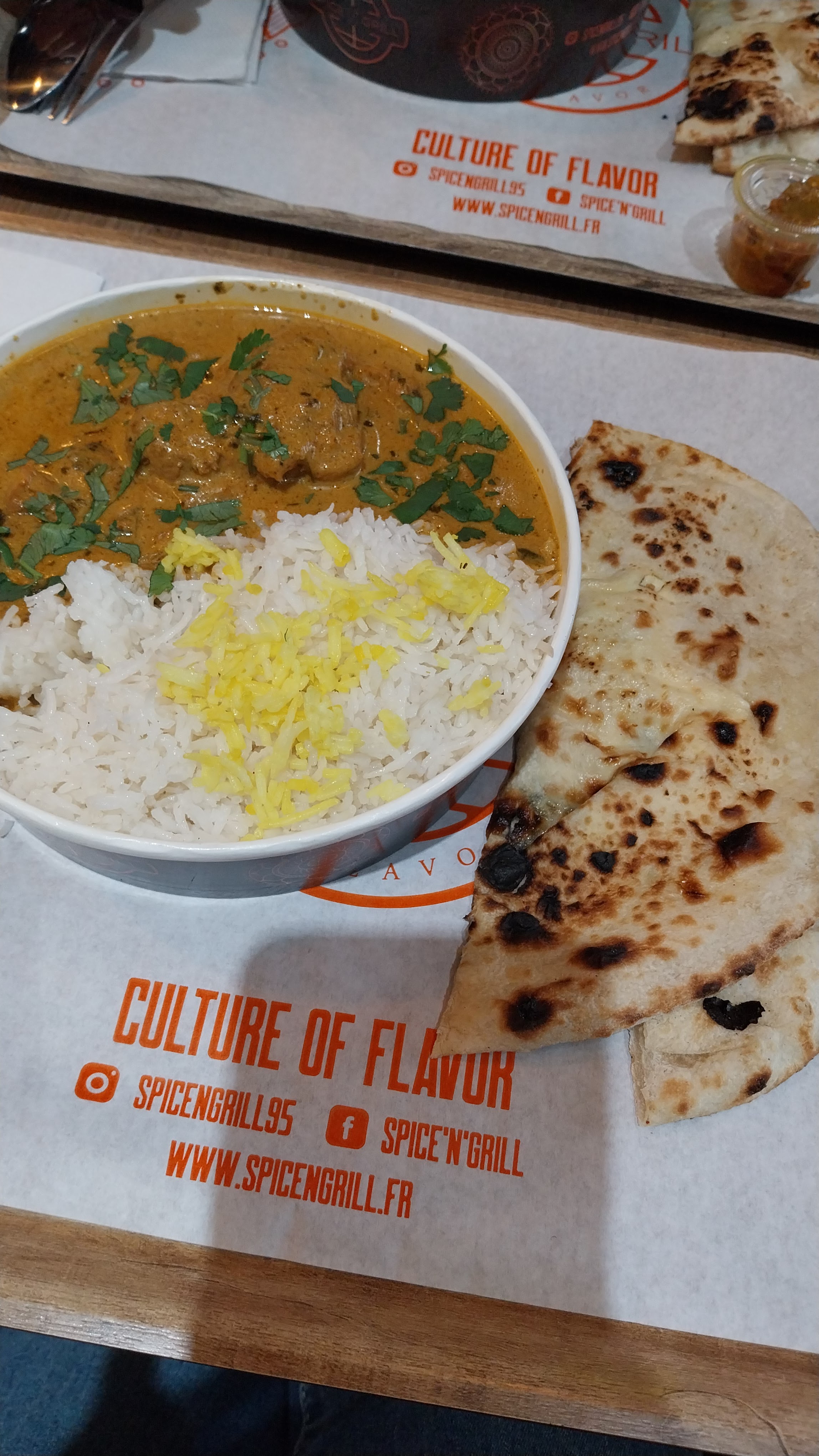 Tout était parfait, très bon accueil , personnel chaleureux et très sympathique !! . Le butter chicken était délicieux très bien assaisonné . Les naans au fromage une pure merveille 👍🏼. Les plats sont bien présentés et portions généreuse . Le restaurant est propre et spacieux . Je recommande a 100%