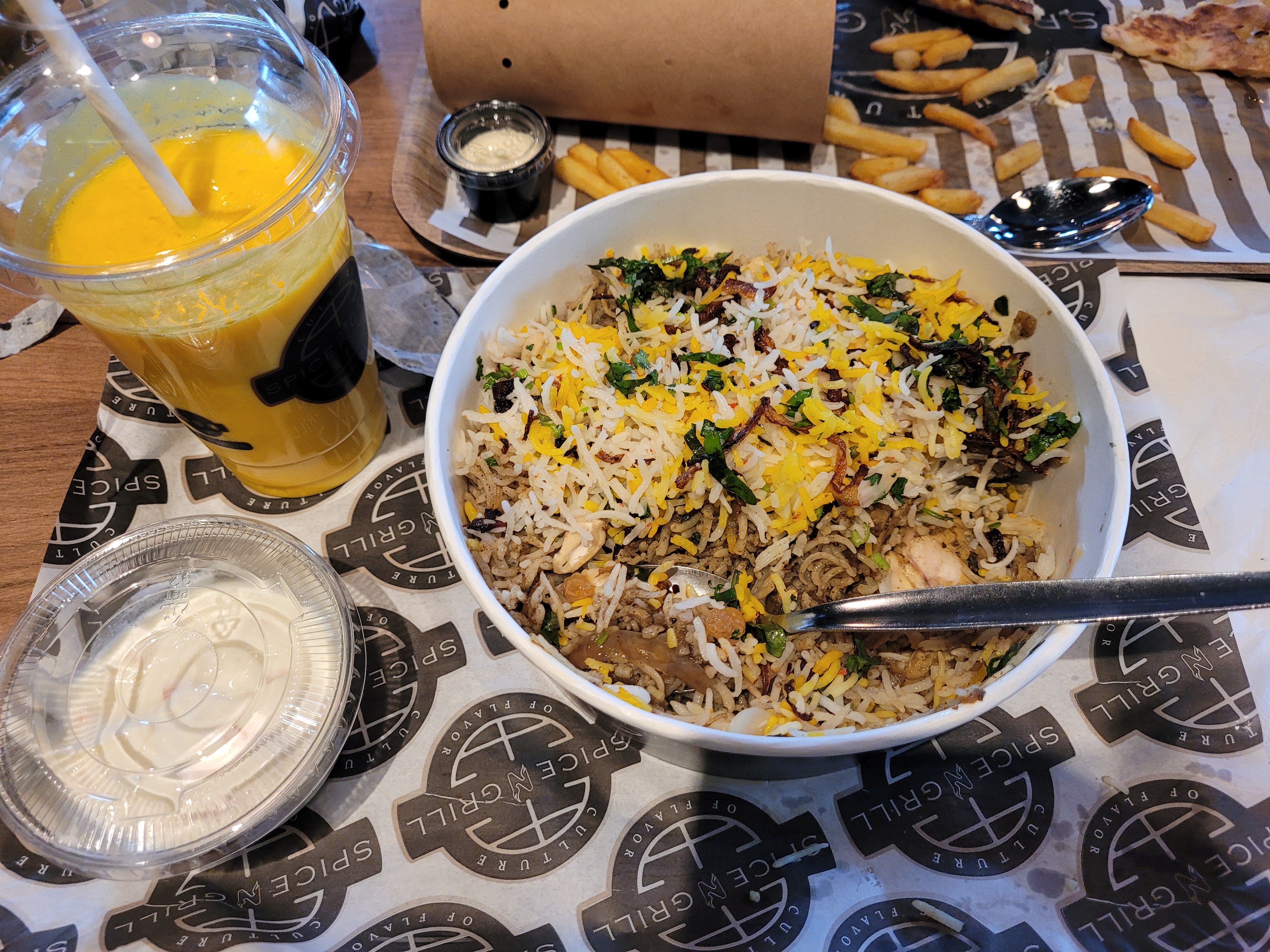 Les plats sont super bons : bien assaisonnés ! Les sauces sont originales et vraiment top ! Le cadre est chaleureux et convivial ! Mention spéciale au lassi mangue et les frites aux épices ! 😍